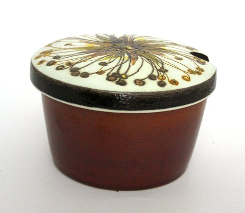 Bavaria, Tirschenreuth, Engblomme, dekoreret på Antoinette eller Marie Antoinette cremefarvet stel med gule blomster og guldkanter. Importeret af Norden og senere Bucka og Nissen. Stellet er dekoreret i Danmark. Flødekande. Højde 11 cm. SOLGT