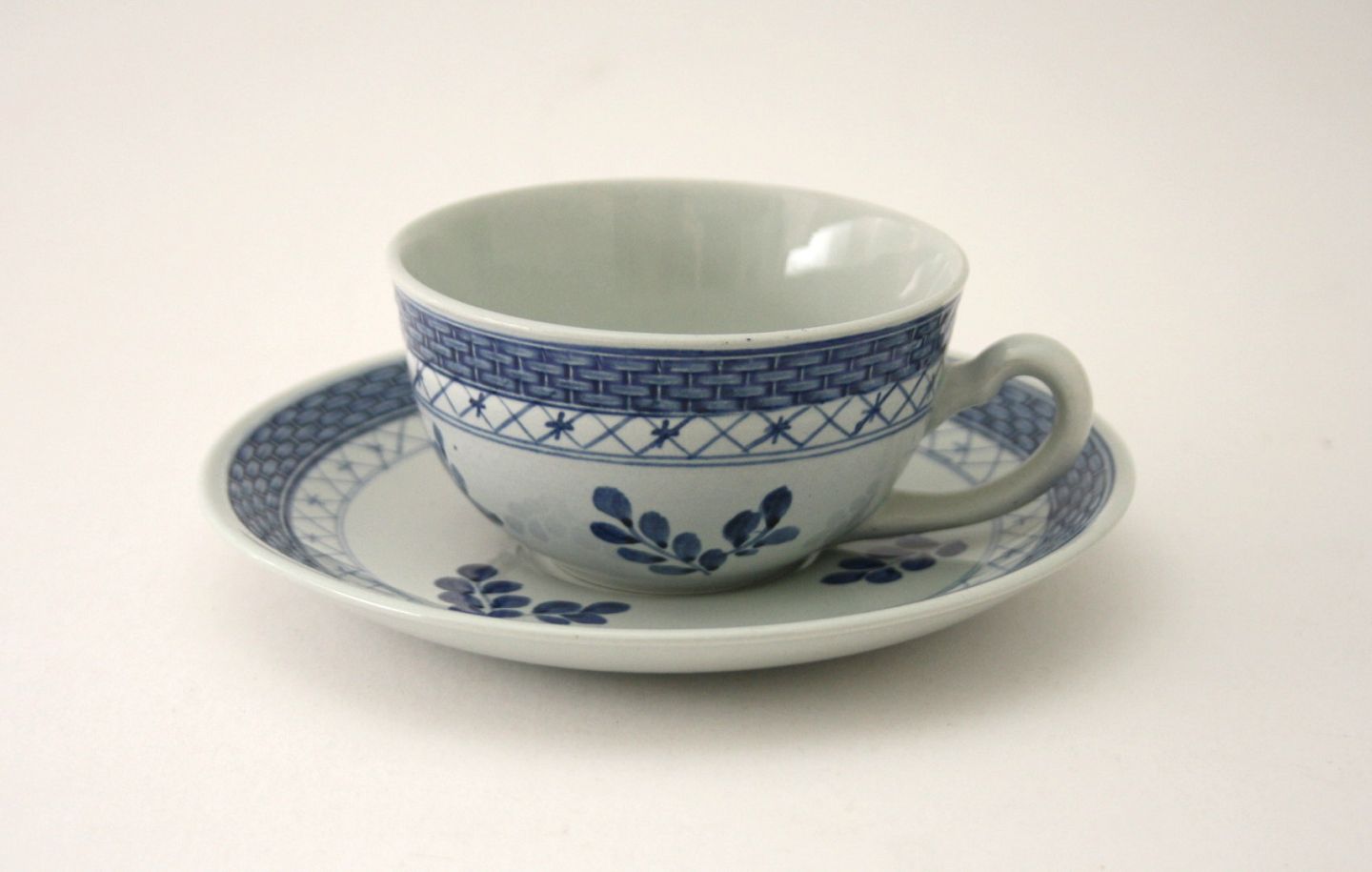 Royal Copenhagen/Aluminia, Tranquebar. Lille chokoladekop med underkop. Nr. 11/1190. Højde 4,5 cm. Diameter 8,5 cm. Underkop diameter 14 cm. Fin stand. Pris: 100 kr. par. Royal Copenhagen. Lager: 6 Aluminia. Lager: 16