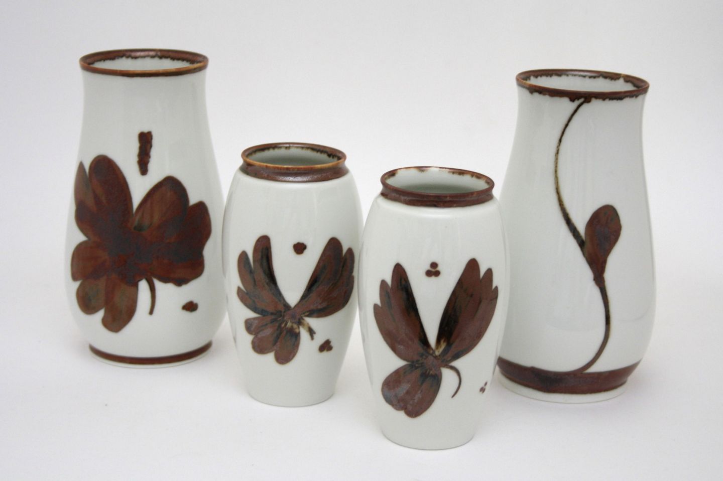 Foran. Vase med blomst/sommerfugl. Dek.nr. 158/5254. Højde 14 cm. Pris: 150 kr. Lager: 2