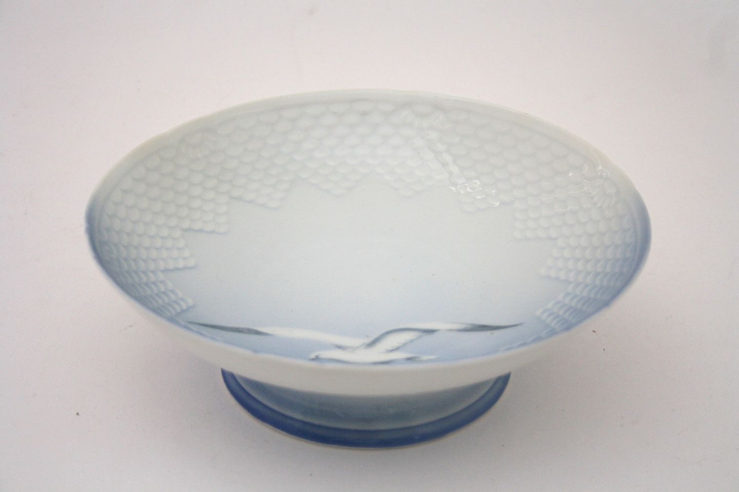 Bing & Grøndahl, Måge med guld. Opsats på lav fod. Nr. 428. II. sortering. Højde 6,5 cm. Diameter 20 cm. Pris: SOLGT