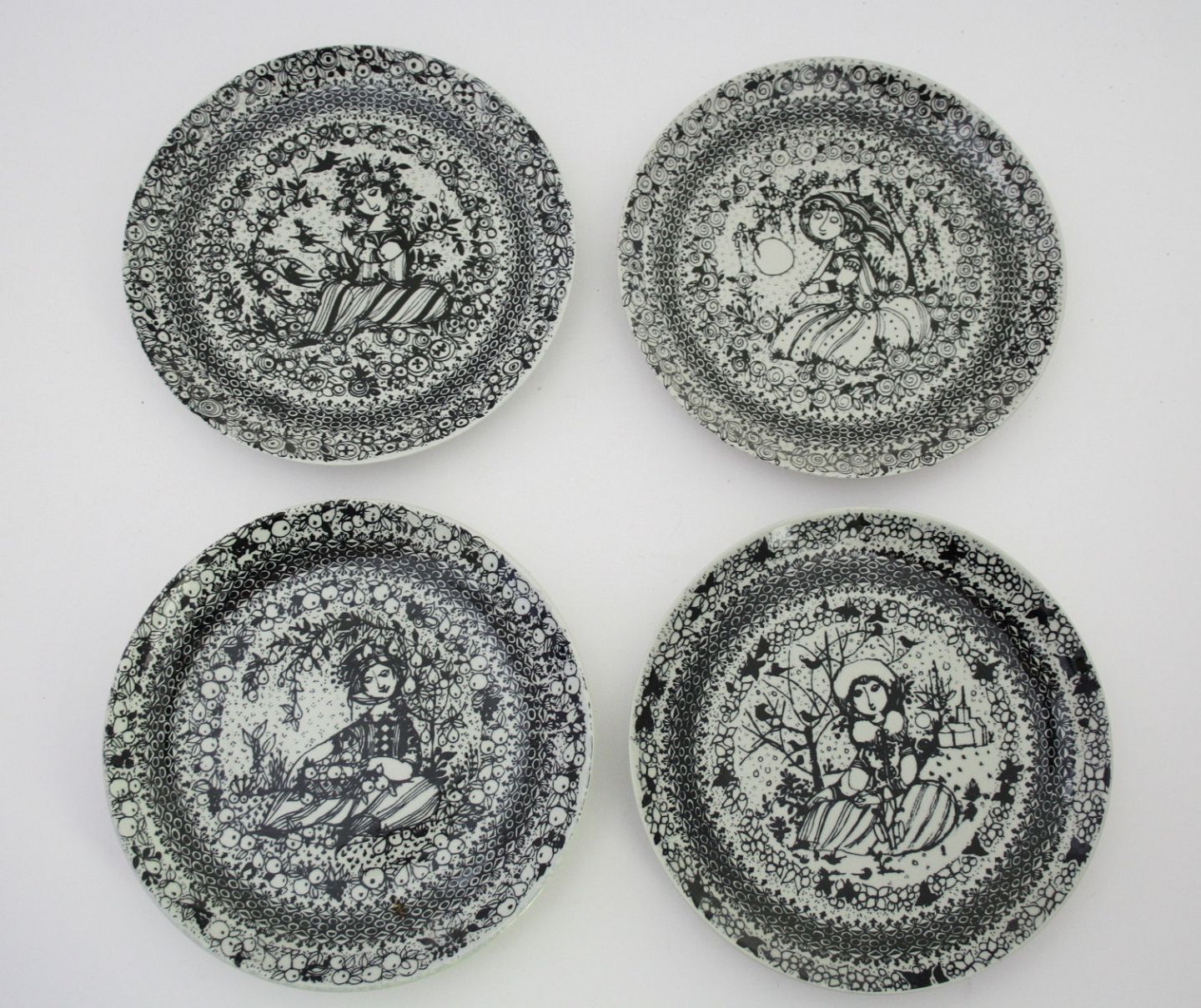 Bjørnwiinblad, Årstiderne. Platter. Nymølle dek.nr. 3054-1286. Diameter 16,5 cm. Sommer. Pris: SOLGT Efterår. Pris: SOLGT Vinter. Pris: SOLGT Forår. Pris: SOLGT