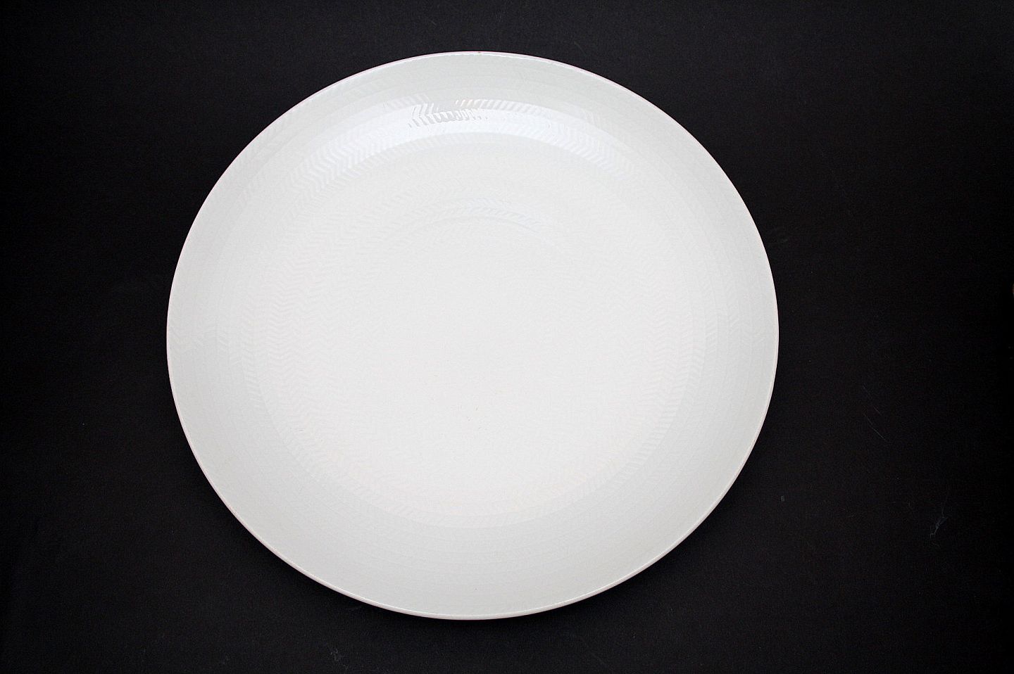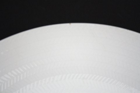 Stort hvidt rundt fad. Diameter 33 cm. Lille brændingsprik i kanten, se ekstra foto, ellers perfekt stand. Pris: SOLGT