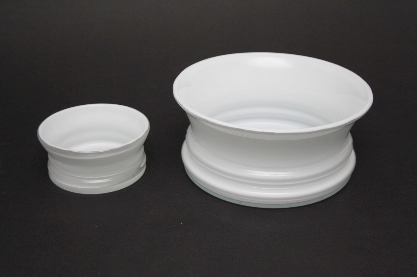 Holmegaard, Opalinehvide skåle og fade i MB serien designet af Michael Bang i 1981 og 1982.