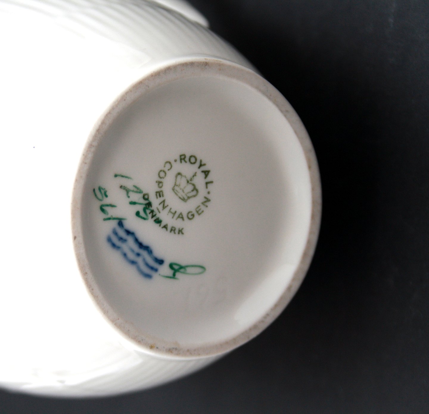 Royal Copenhagen, Tradition, hvid halvblonde med guldkant. Lille mælkekande. Nr. 1775/561. I. sortering. Højde 13 cm. Pris: SOLGT