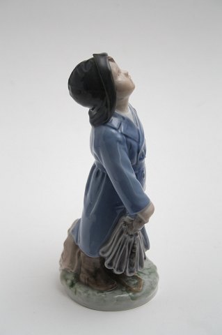 Royal Copenhagen, dreng med paraply designet af Ada Bonfils, produceret frem til 2000. Nr. 3556. I. sortering. Pris: 550 kr. Lager: 3