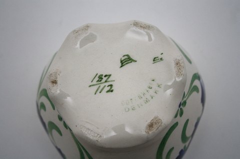 Aluminia, Blaa Cenerarier sukkerskål, designet af Harald Slott-Møller i 1903. Dekorationsnr. 187/112. Fin stand meget velholdt. Højde 8 cm. Diameter 12 x 11,5 cm. Pris: 425 kr.