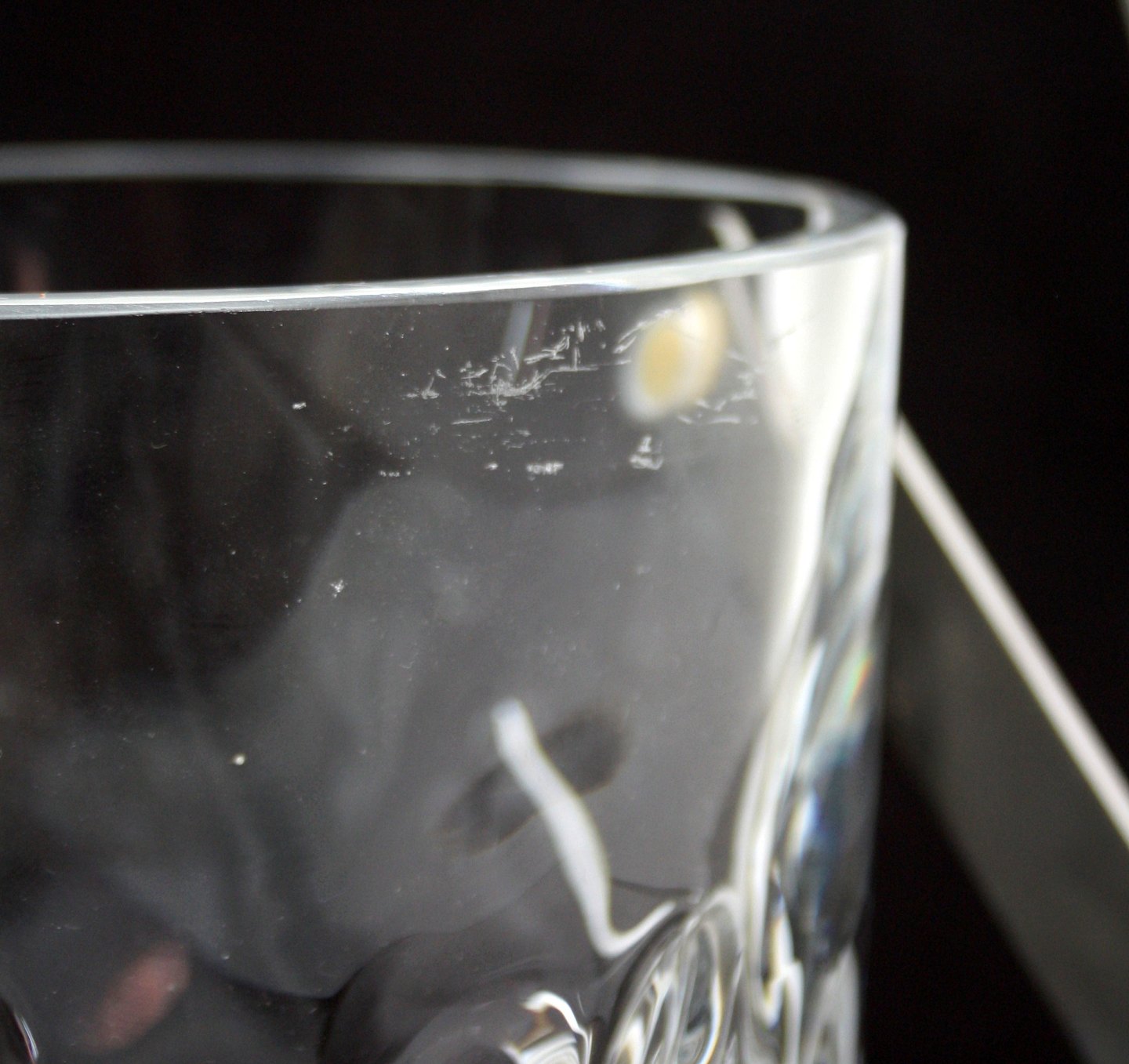 Holmegaard, Ispol, Isspand med stålhank designet af Christer Holmgren i 1970. Højde uden hank 14 cm. Diameter 13 cm. Ridser ved kant se ekstra foto. Pris: SOLGT