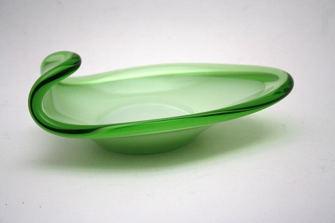 Lysegrønt fad med hvid opaline. Længde 19cm. Bredde 15 cm. Højde 7 cm. Pris: 375 kr. Lyseblå skål med hvid opaline. 18 x 16 cm. Højde 11 cm. Pris: 325 kr.