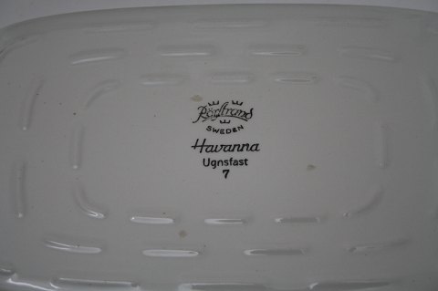 Rørstrand, Havanna, ovnfaste fade i flot stand. Aflang fad med ører. Længde 25 cm. Bredde 14. Højde 3,5 cm. Pris: SOLGT Aflang fad med ører. Længde 21 cm. Bredde 12. Højde 3 cm. Pris: SOLGT