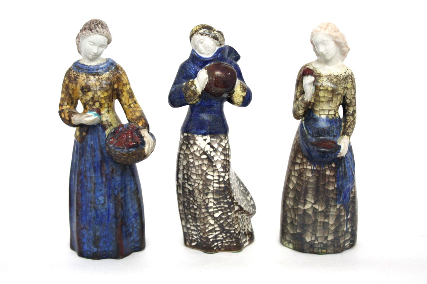 Michael Andersen, Bornholm, De 4 årstider, 3 af figurerne. Designet i 50'erne i Persia krakelé glasur. Højde 24 cm. Perfekt stand. Pris: 850 kr. stk.