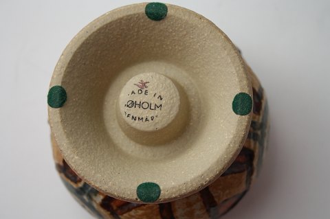 Søholm, Lysestage/skål i stentøj med flot flerfarvet glasur. Højde 9 cm. Diameter 11 cm. Pris: SOLGT