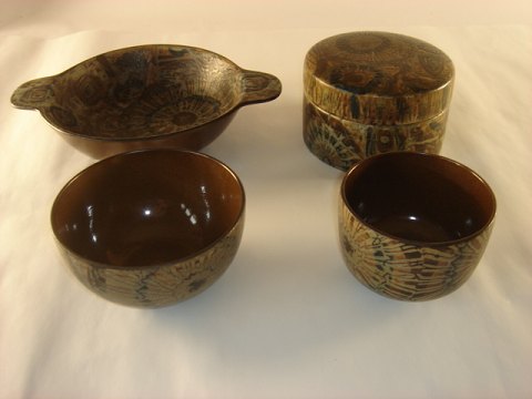 4 skåle. Royal Copenhagen Fajance, Baca. Kunstste
