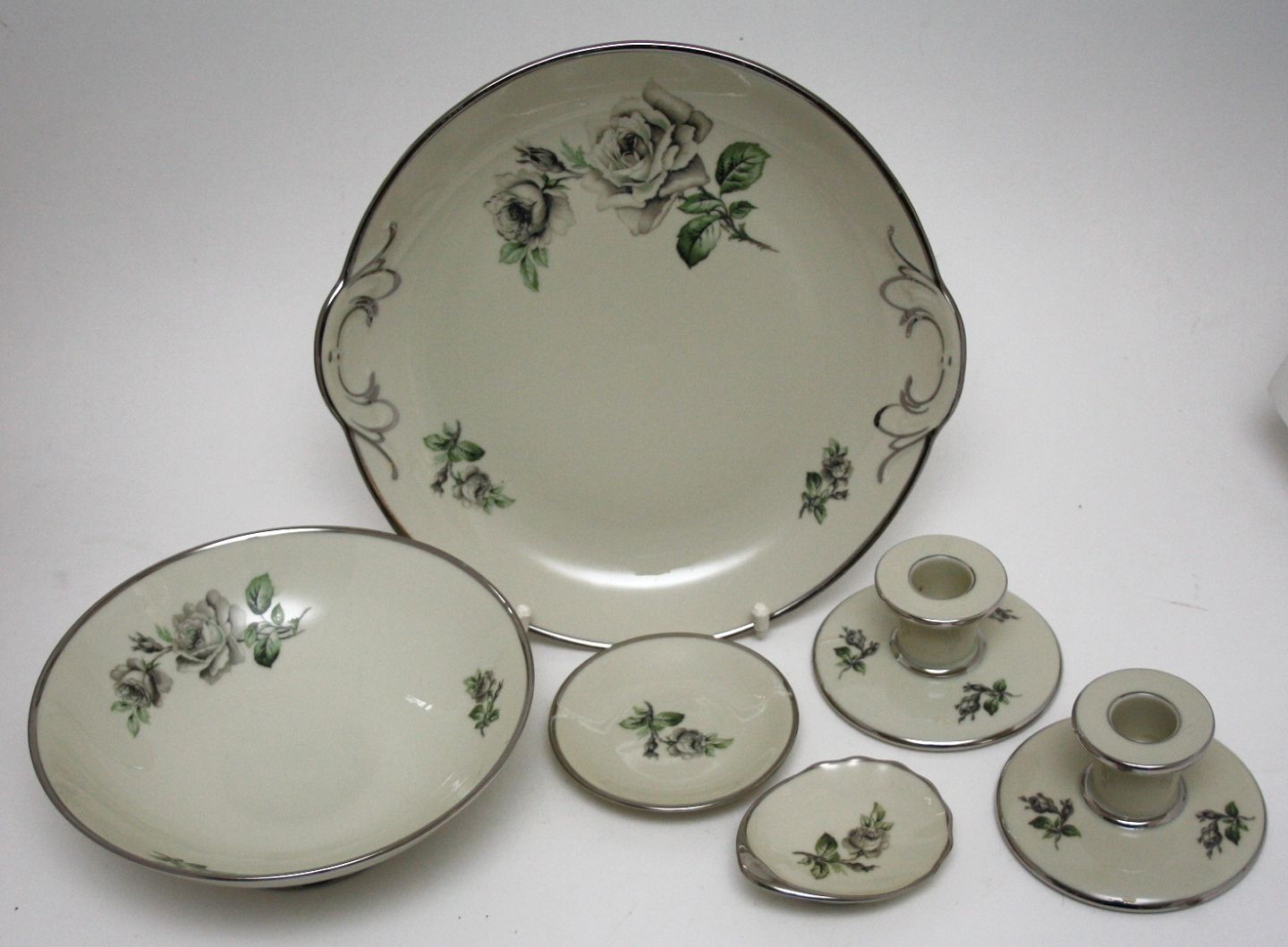 Skål, kagefad, lysestage, askebæger, Vallø 1007, Kjøbenhavns Porcellains Maleri