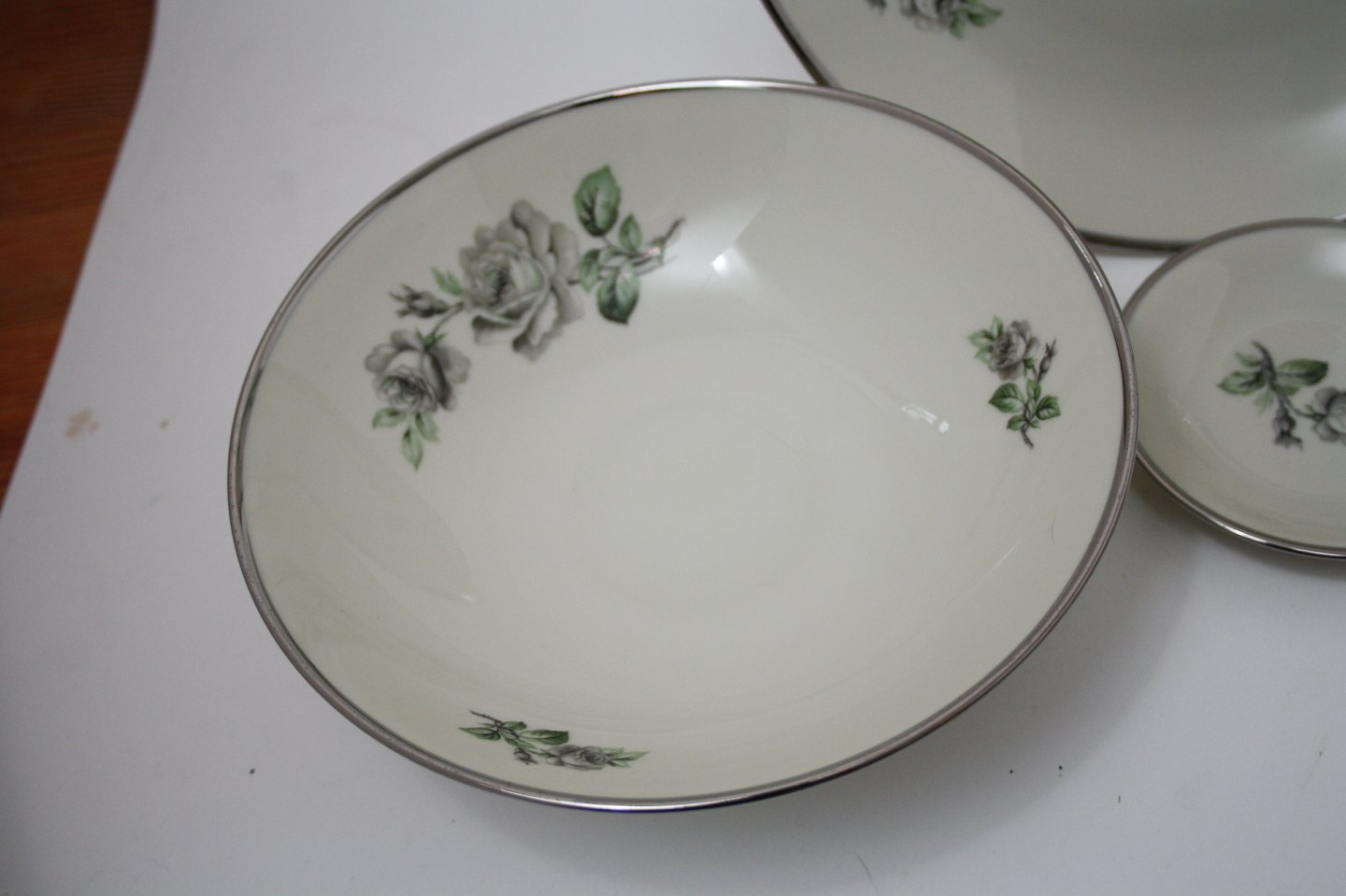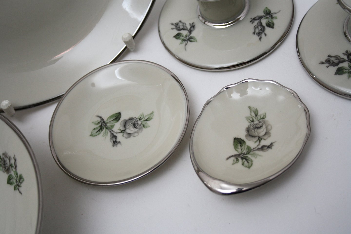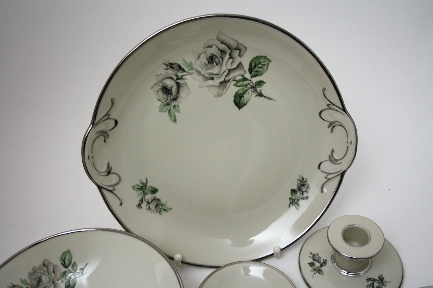 Kjøbenhavns Porcellains Maleri. Vallø 1007 med platinkant, Grøn rose. Fra slutningen af 1930'erne.