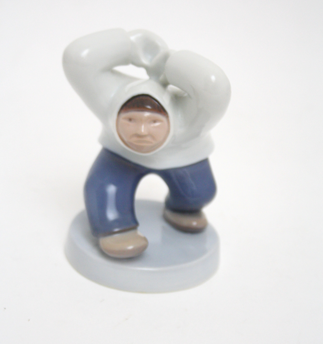Bing & Grøndahl, Vred Grønlænder designet af Karl Kristoffersen. Karl Kristoffersen er en del af den skulpturelt dygtige familie Kristoffersen fra Godthåb. Højde 10,5 cm. Pris: SOLGT