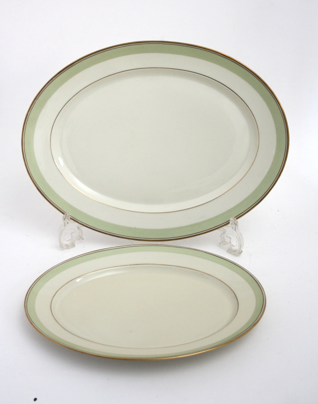 Royal Copenhagen, Broager. Cremet stel med lysegrøn bort og guldkanter. Designet af Thorkild Olsen. I. og II sortering.