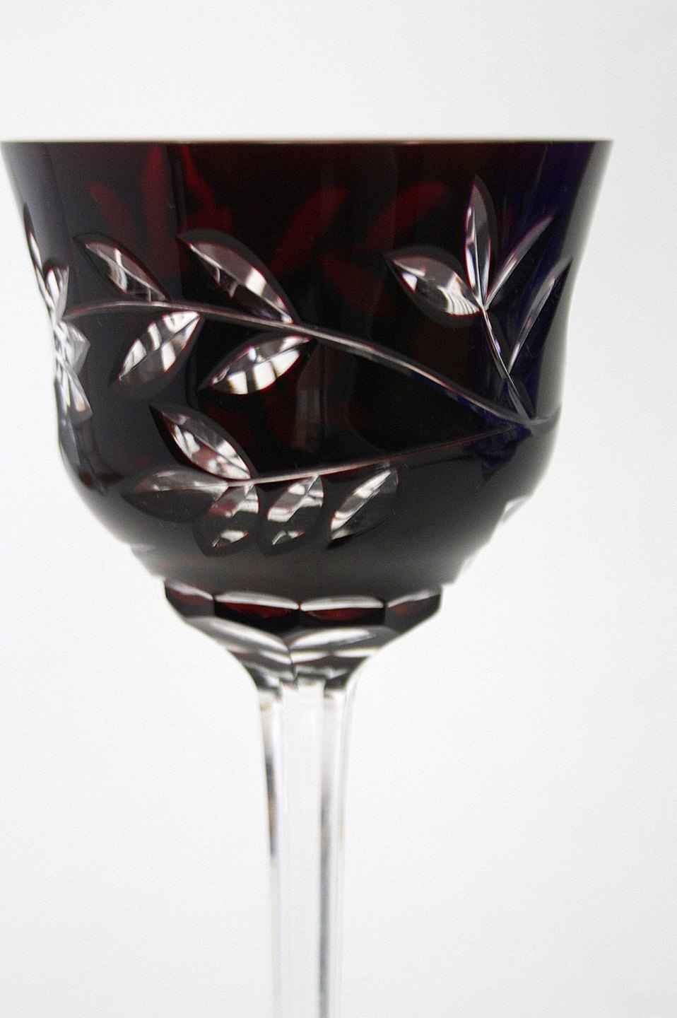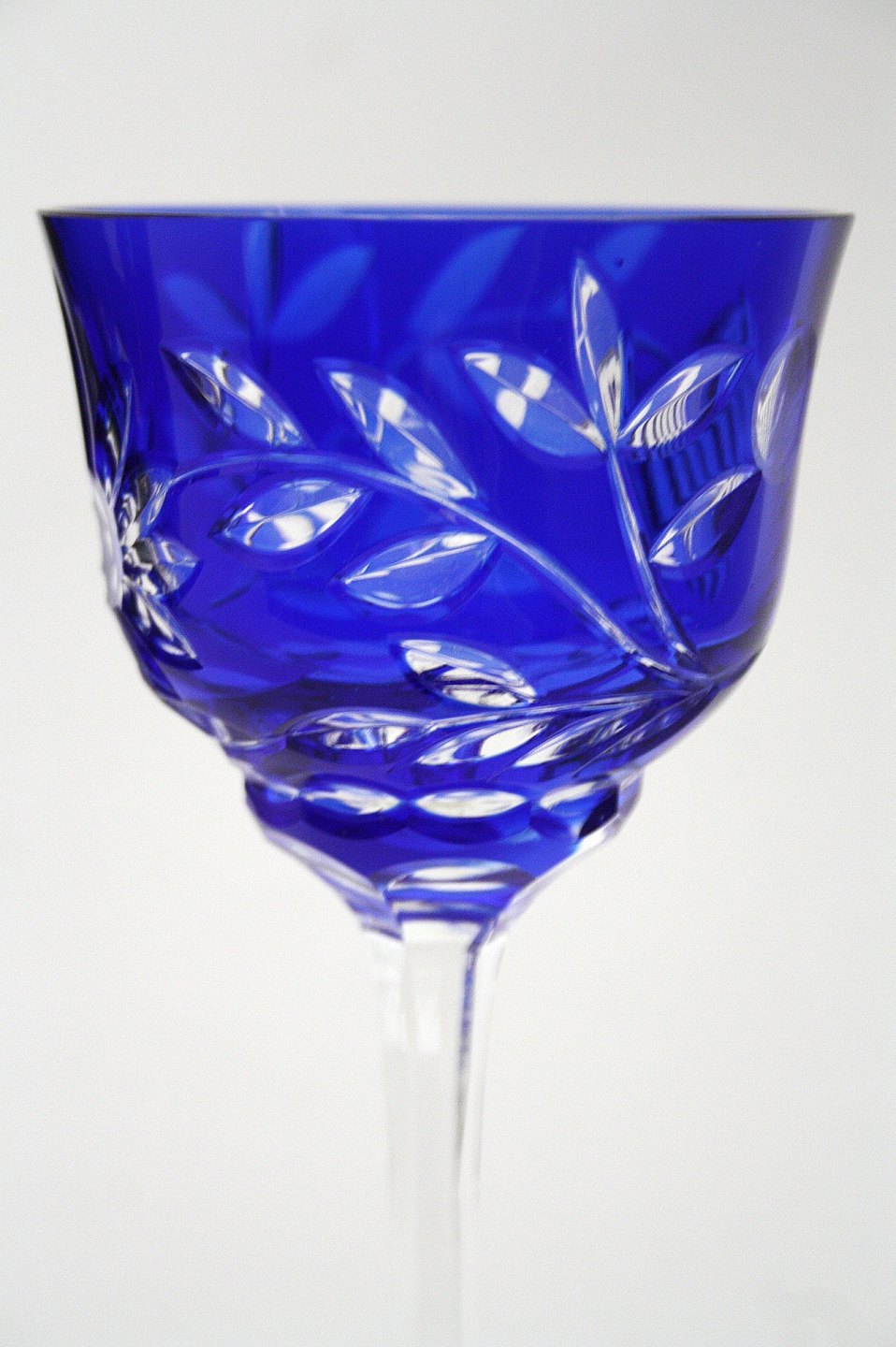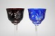Bøhmisk krystal, vinglas slibninger kumme, stilk og fod. Højde 19 cm. Pris: 225 kr. stk. Aubergine. Lager: SOLGT Blå. Lager: 1