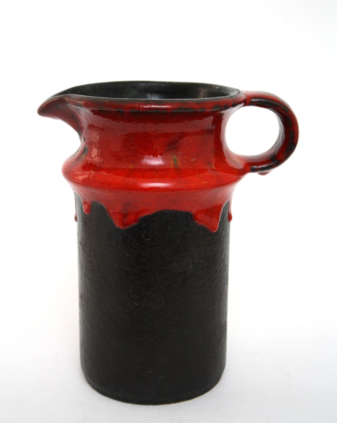 Jasba, Westgermany, Kande med brun mat glasur og rød blank glasur. Formnr. 1-222-22. Højde 22 cm. Længde 19 cm. Pris: 350 kr.