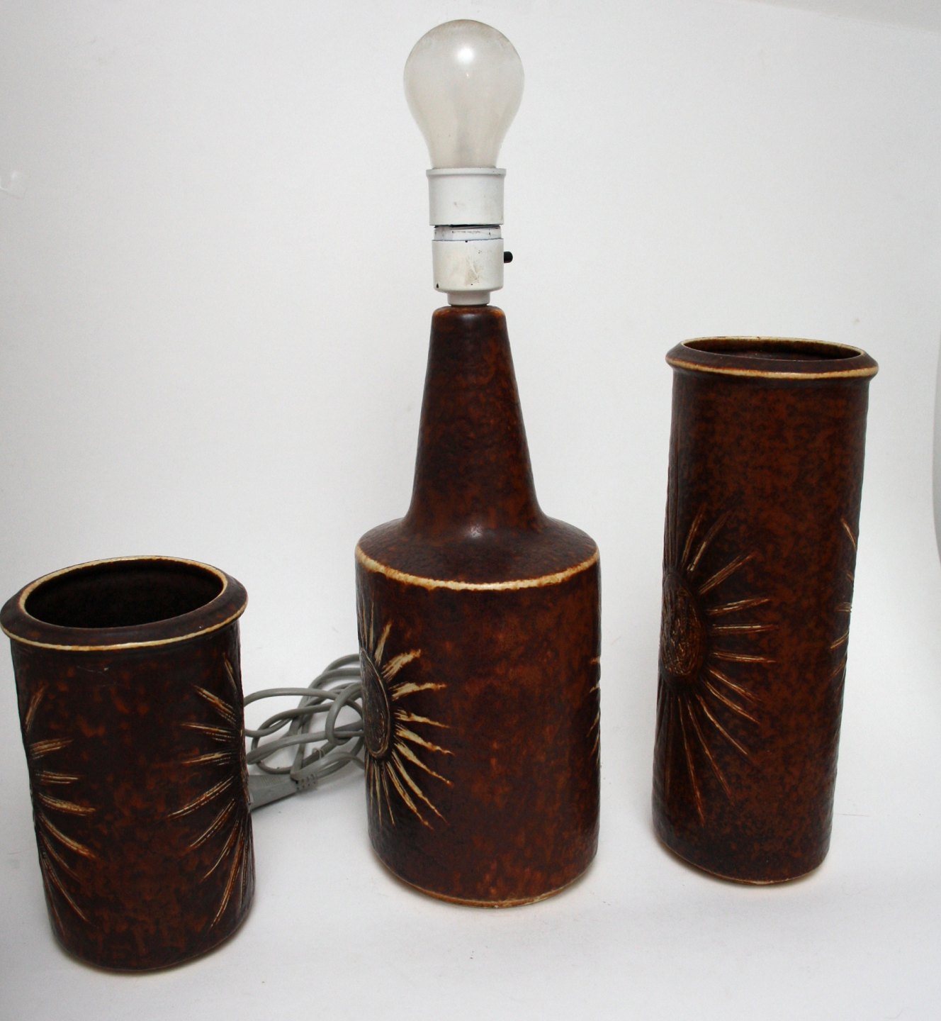 Søholm stentøj, brunglaseret serie med solmotiv.