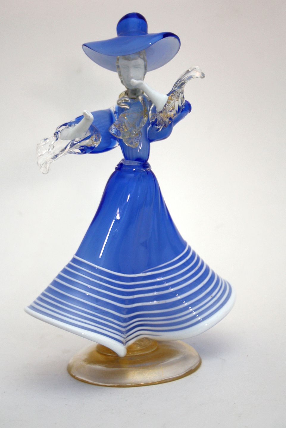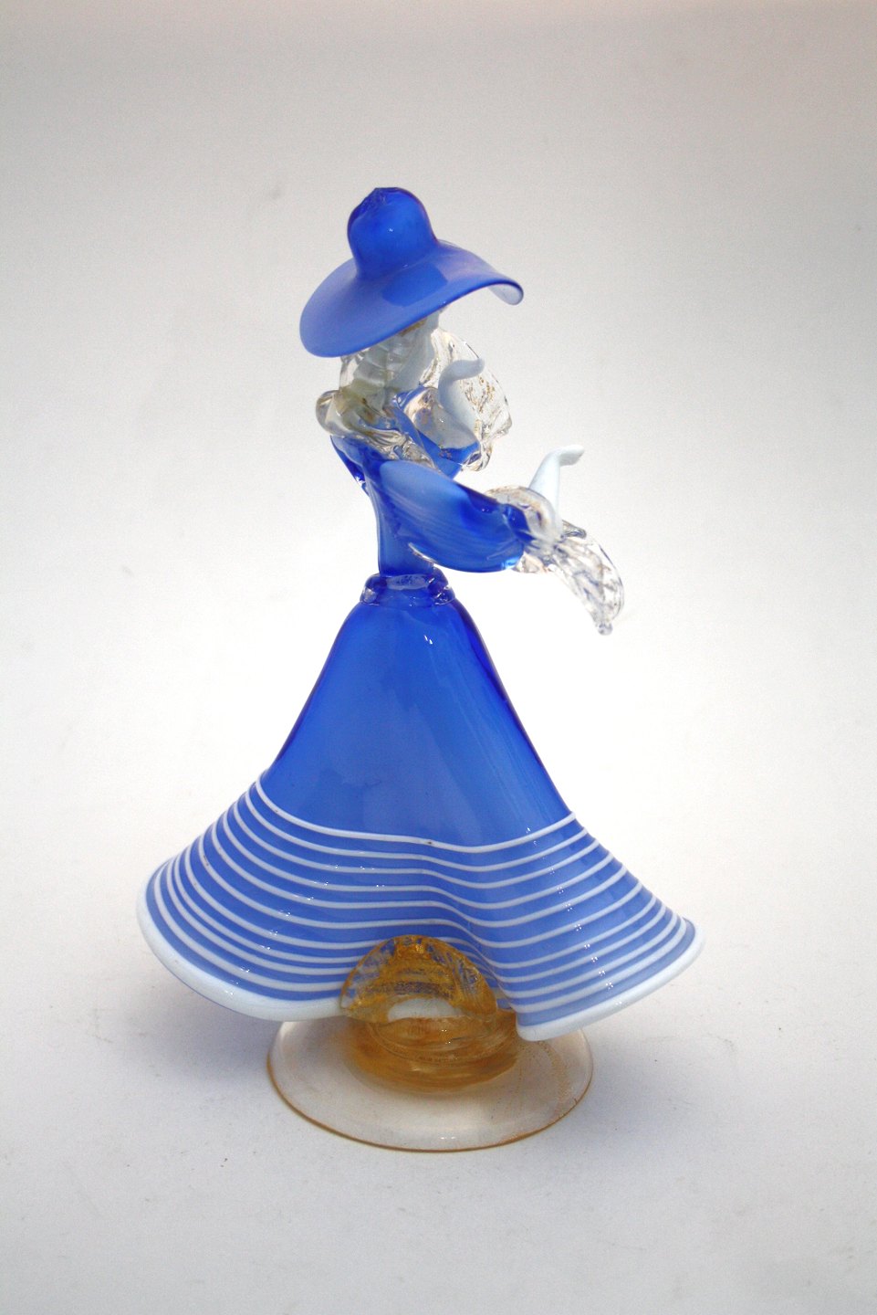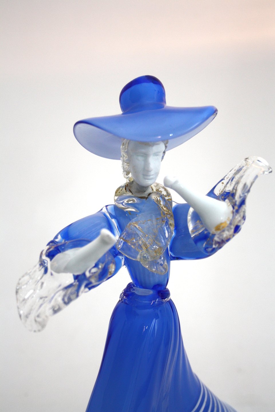 Murano, Italy, Kvinde i blå kjole og hat. Højde 25 cm. Flot stand. Pris: SOLGT