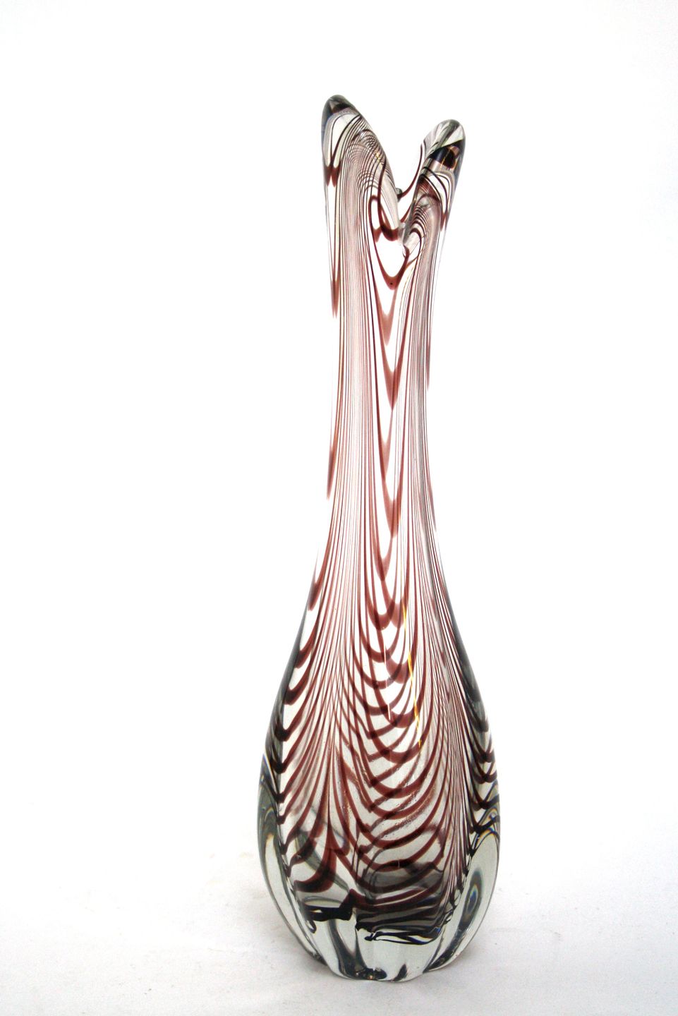 Kastrup glasværk, Stribet næbvase fra 1950'erne. Højde 30,8 cm. Lidt kalk indvendig. Pris: SOLGT
