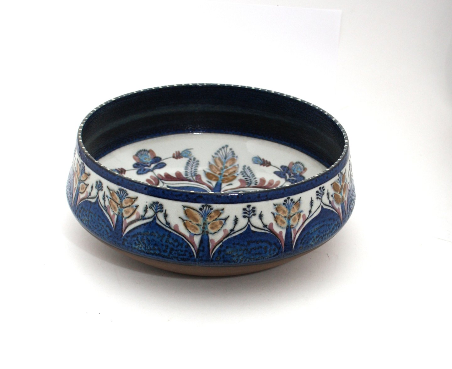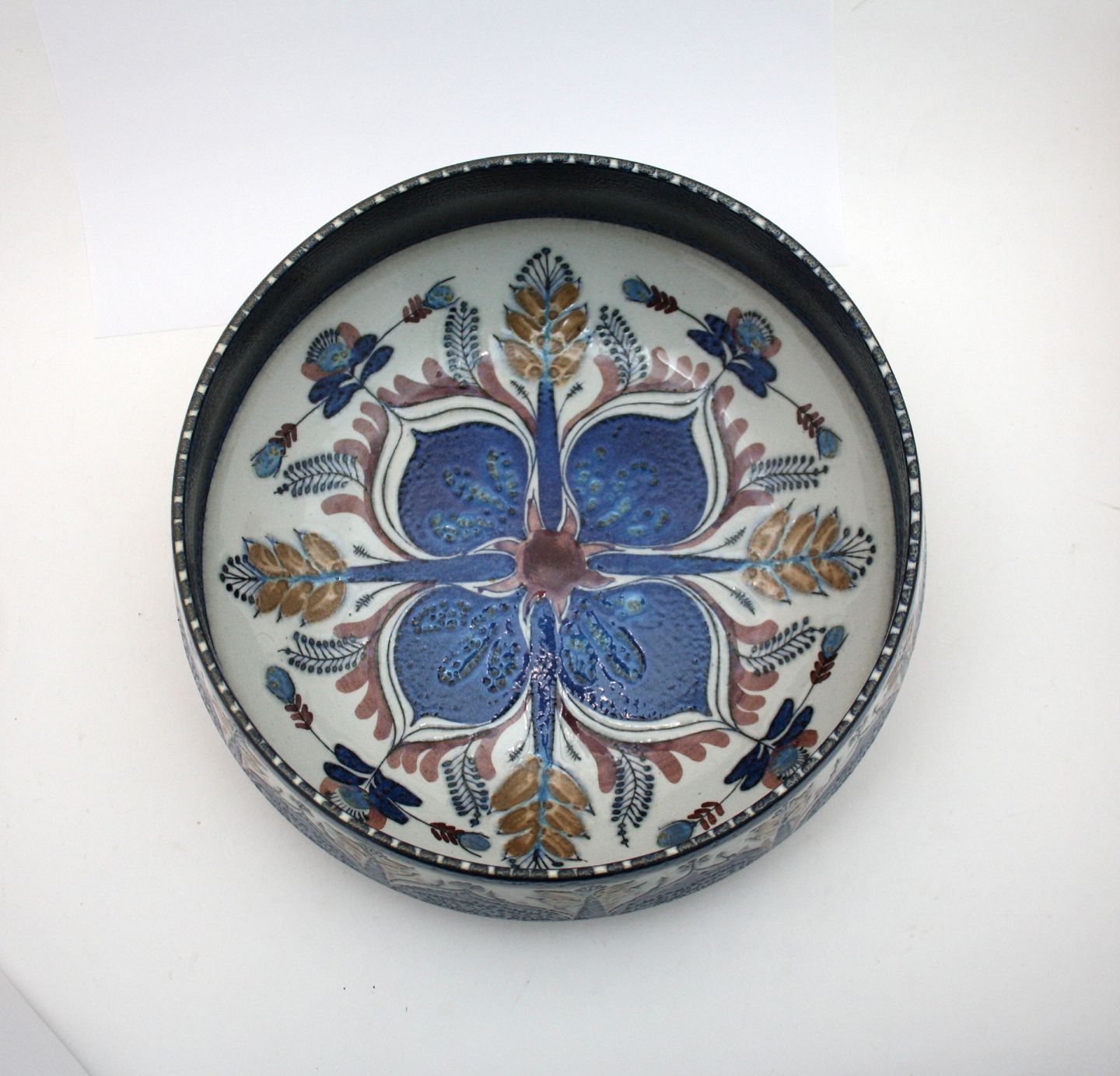 Aluminia, Tenera stor rund skål med blomster. Designet af Berte Jessen i midten af 1960'erne. Formnr. 439/3178. Højde 9 cm. Diameter 26 cm. Flot stand. Pris: SOLGT