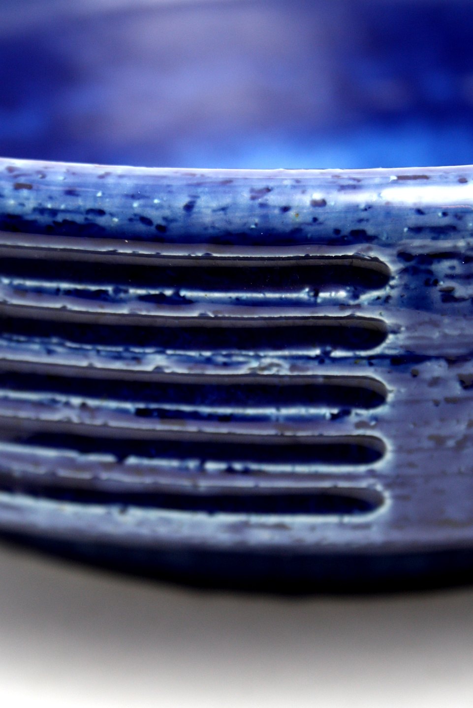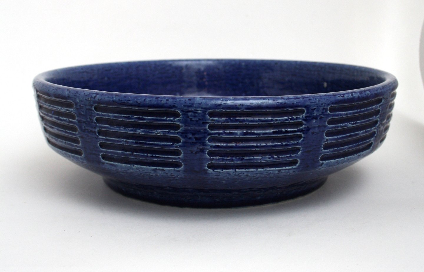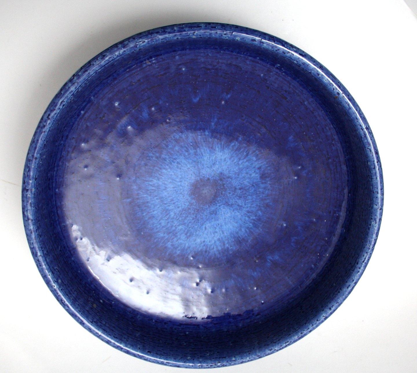 Palshus keramik. Stor blåglaseret skål. Fra 1960-70'erne. Diameter 33 cm. Højde 9,5 cm. Formnr. G 114. Signeret PL-S. Per Linnemann-Schmidt. Flot stand. Pris: SOLGT