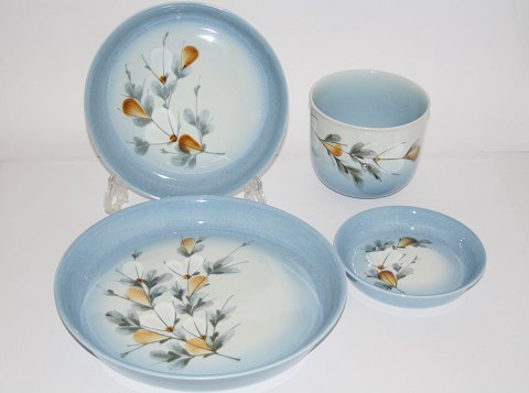 Rørstrand, Blå Koka designet af Hertha Bengtson i 1956. Skål med ører. Formnr. 60. Højde 3 cm. Diameter 17,5 cm. Længde med ører 20 cm. Flot stand. Pris: SOLGT