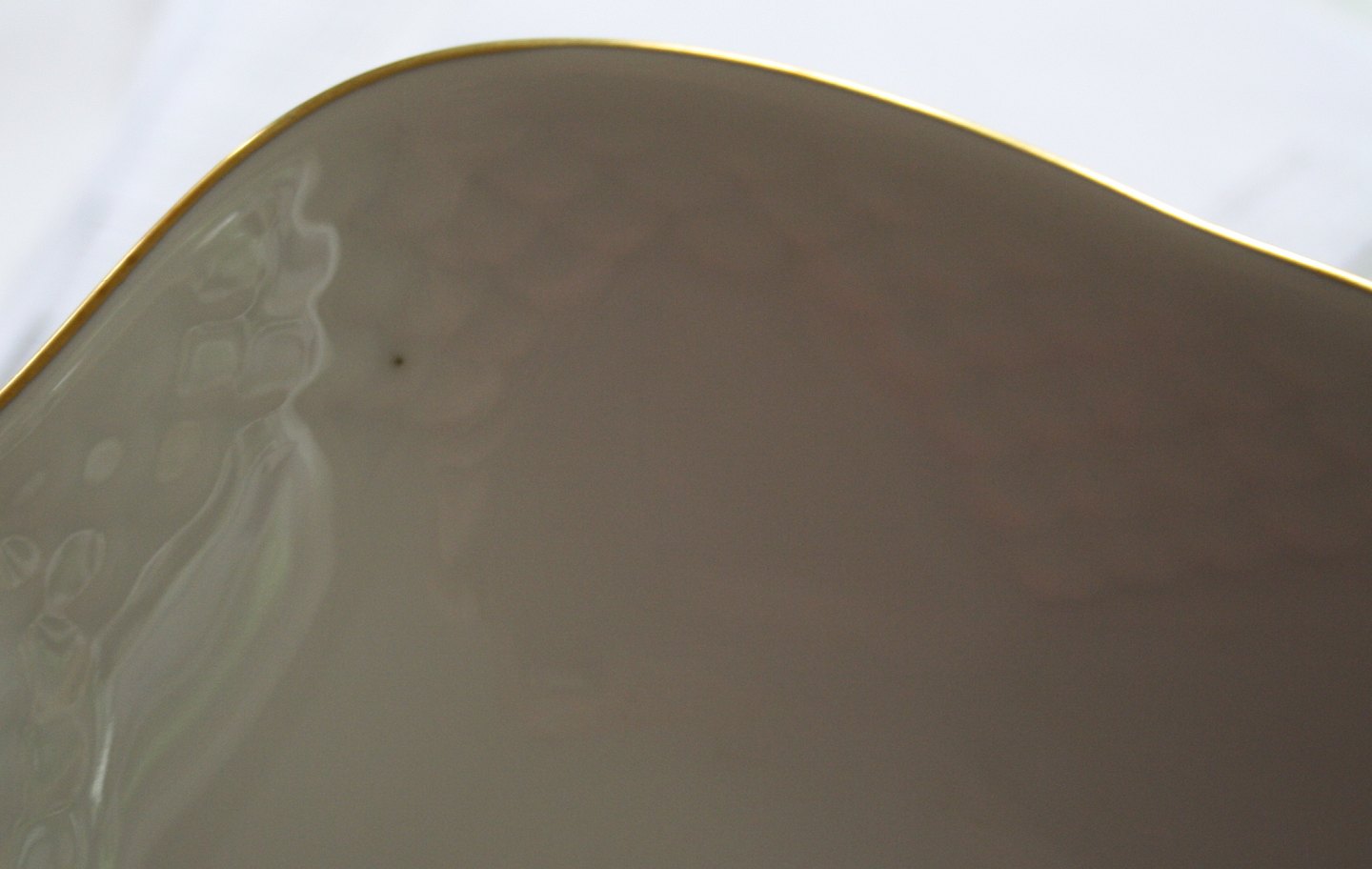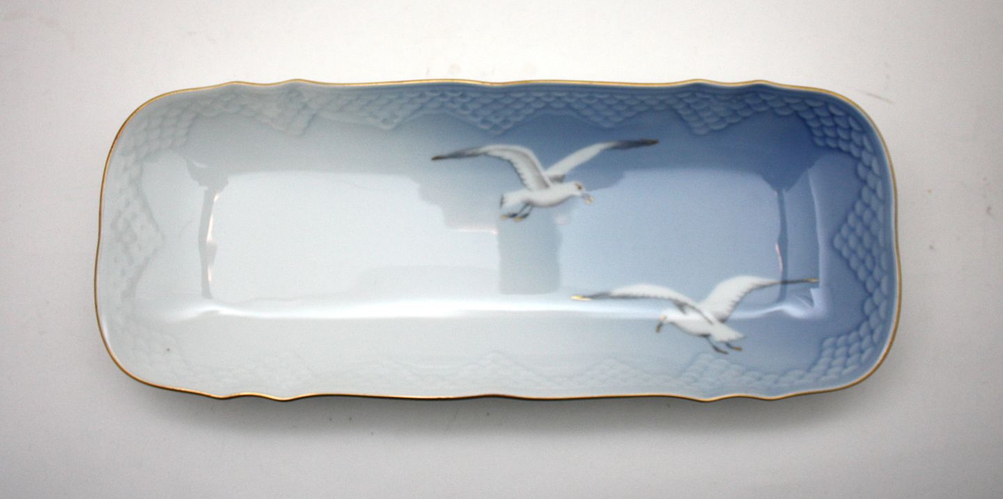 Bing & Grøndahl, Måge med guld. Rouladefad. Formnr. 205. Længde 39 cm. Bredde 15 cm. II sortering lille brændingsplet. Pris: SOLGT