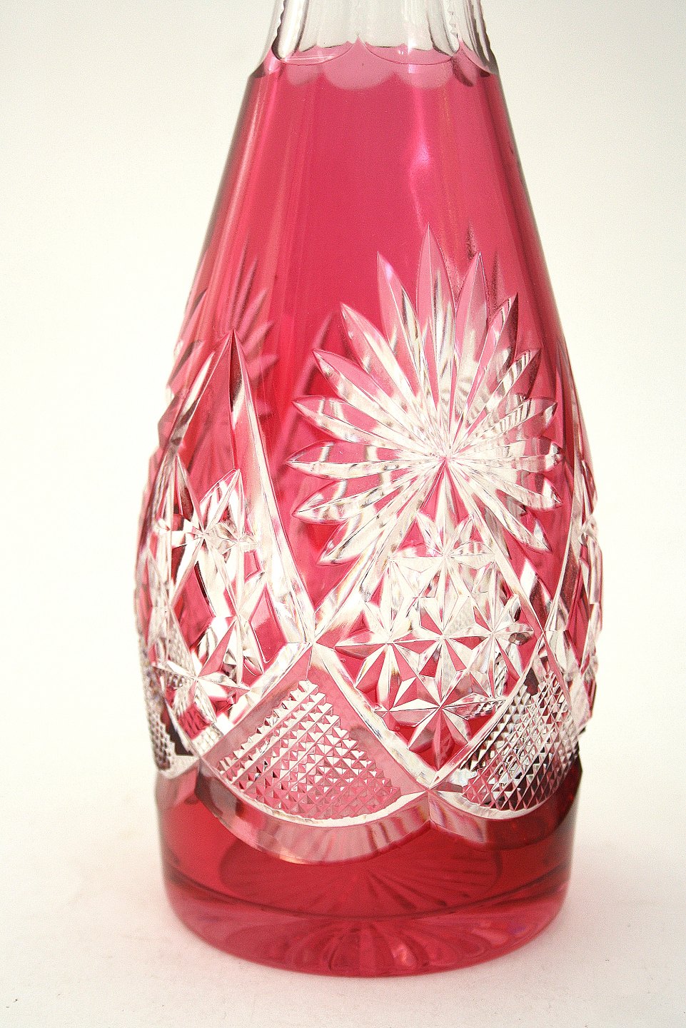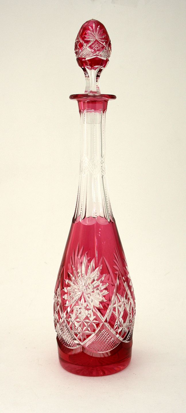 Val st. Lambert, Belgien, rød krystal karaffel med flotte slibninger. signeret Val st. Lambert. Højde 41 cm. Flot stand. Pris: SOLGT