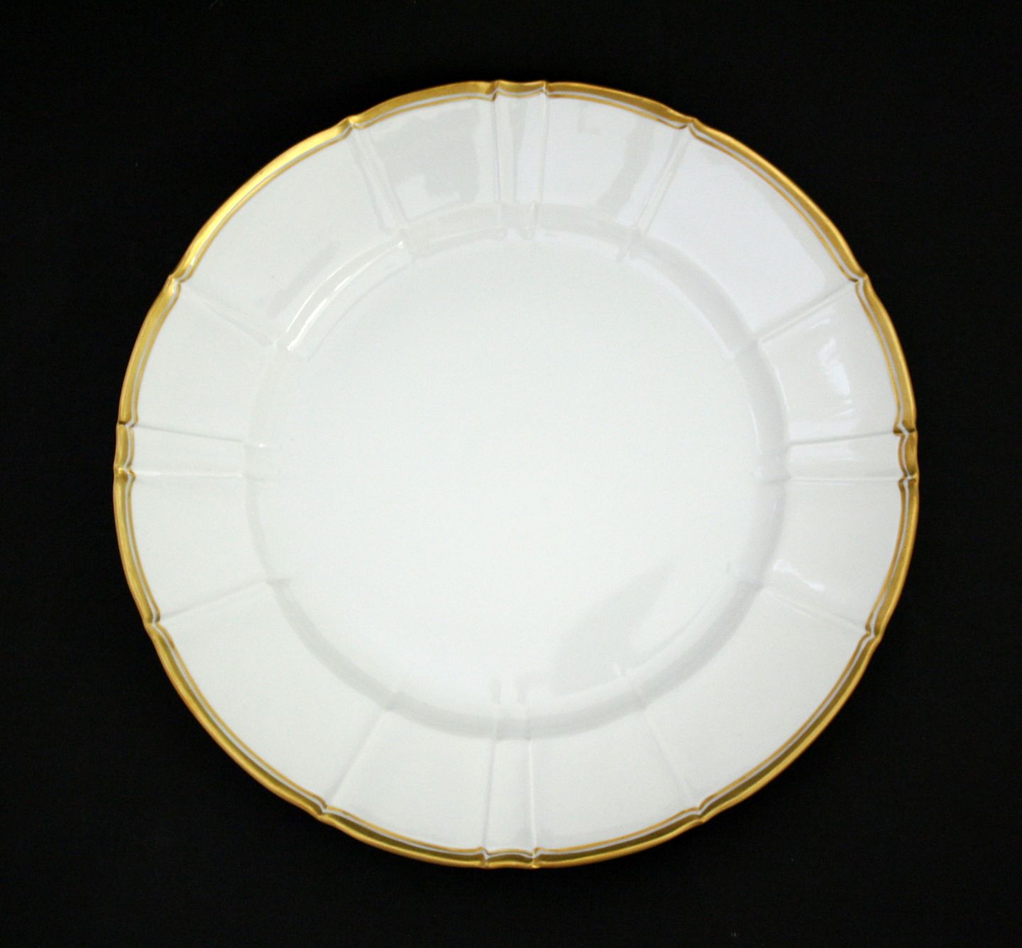Royal Copenhagen, (normalt B&G) Offenbach, hvidt porcelæn med knækkede kanter og guld. Rundt fad eller dækketallerken. Dek.nr. 626. Diameter 27 cm. I. sortering. Pris: SOLGT