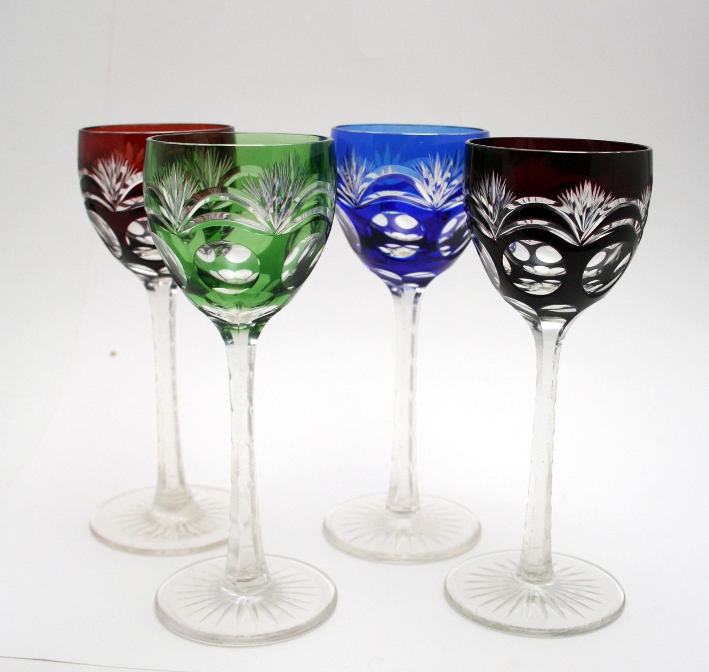 Bøhmisk krystal, Vinglas med slibninger på kumme og stilk. Højde 20,5 cm. Øverste diameter 7,5 cm.Pris: 225 kr. stk.