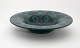 Arabia, Finland, smukt rundt keramikfad/skål i mørkegrøn glasur med påmalede sorte motiver. Designet af Hilkka-Liisa Ahola. Signeret HLA/LP. Diameter 29 cm. Højde 6 cm. Flot stand. Pris: SOLGT