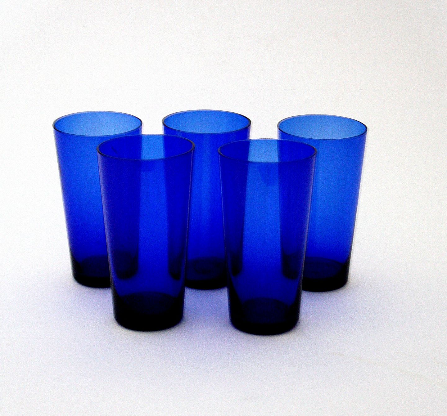Holmegaard, Blå sodavand/vandglas. Højde 9,5 cm. Pris: SOLGT