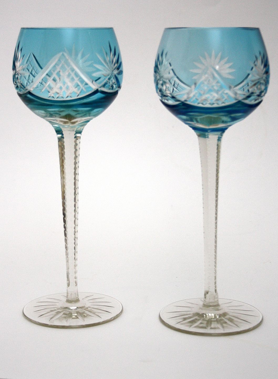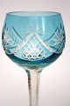 Bøhmisk krystal. Aqua lys blå. Slebet kumme og stilk. Højde 20,5 cm. Øverste diameter 6,5 cm. Pris: SOLGT