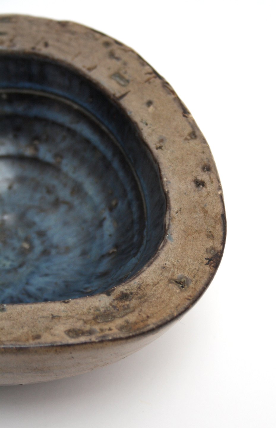 Helge Østerberg. Trekantet skål med lys brun spættet glasur, blå indvendig. Signeret Ø, Denmark. Diameter 13,5 cm. x 14 cm. Højde 5-5,5 cm. Perfekt stand. Pris: 1200 kr.