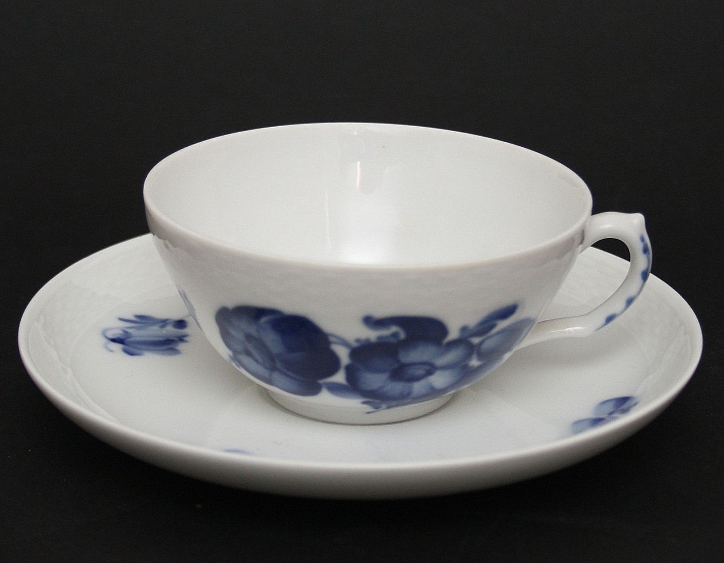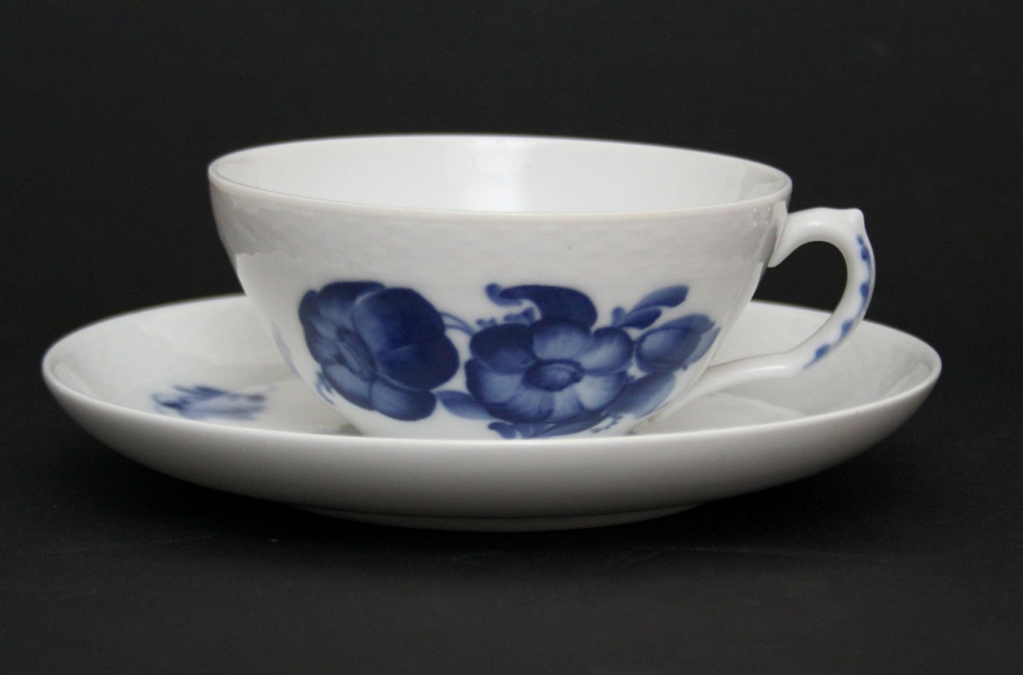 Royal Copenhagen, Blå blomst flettet, Tekop med underkop. Nr. 10/8049 og 8045. Kop diameter 10 cm, højde 5 cm. II. sortering. Pris: 200 kr. stk. Lager: 5