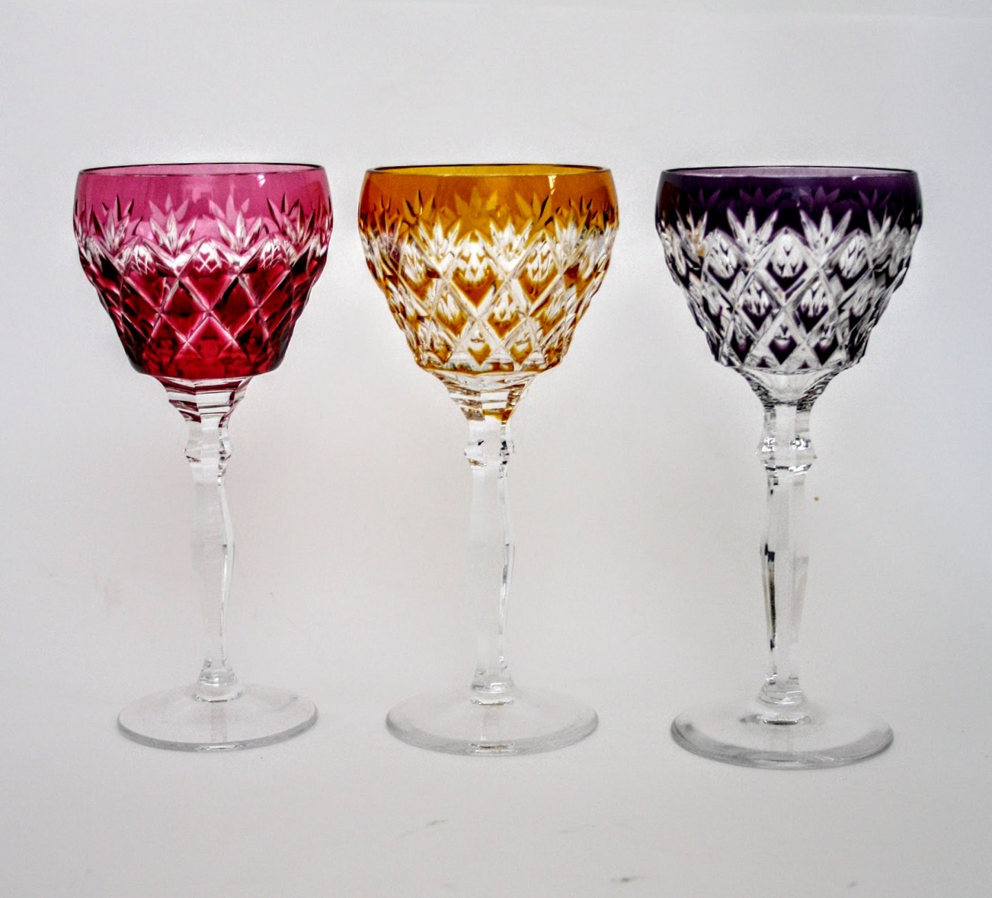 Bøhmisk krystal, Store smukke vinglas. Slebet kumme og stilk. Højde 19 cm. Øverste diameter 8 cm. Pris: SOLGT
