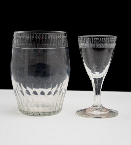 Karaffel med slebet bånd på hals, med olivslibninger nederst og rundslebet i bunden. Rosa skær. Højde med prop 27 cm. Pris: SOLGT