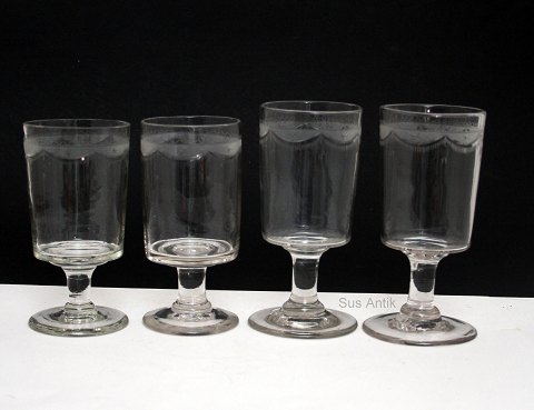 Snapseglas med Gustav III og Christian IV gravering. Gustav III. Højde 16,5 cm. Pris: 150 kr. stk. Lager: 2 Christian IV. Højde 16 cm. Pris: SOLGT