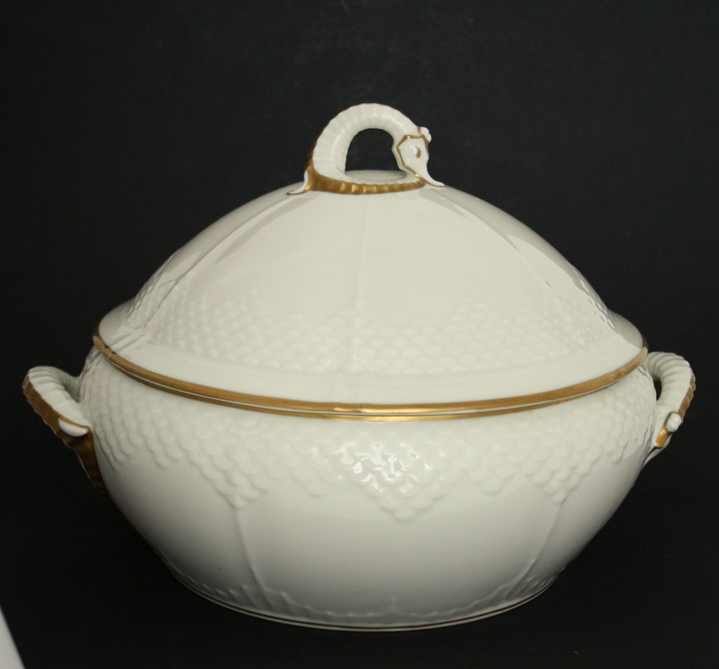 Lågterrin. Dek.nr. 5. længde 25 cm. højde 19 cm. 2, sortering. Pris: SOLGT