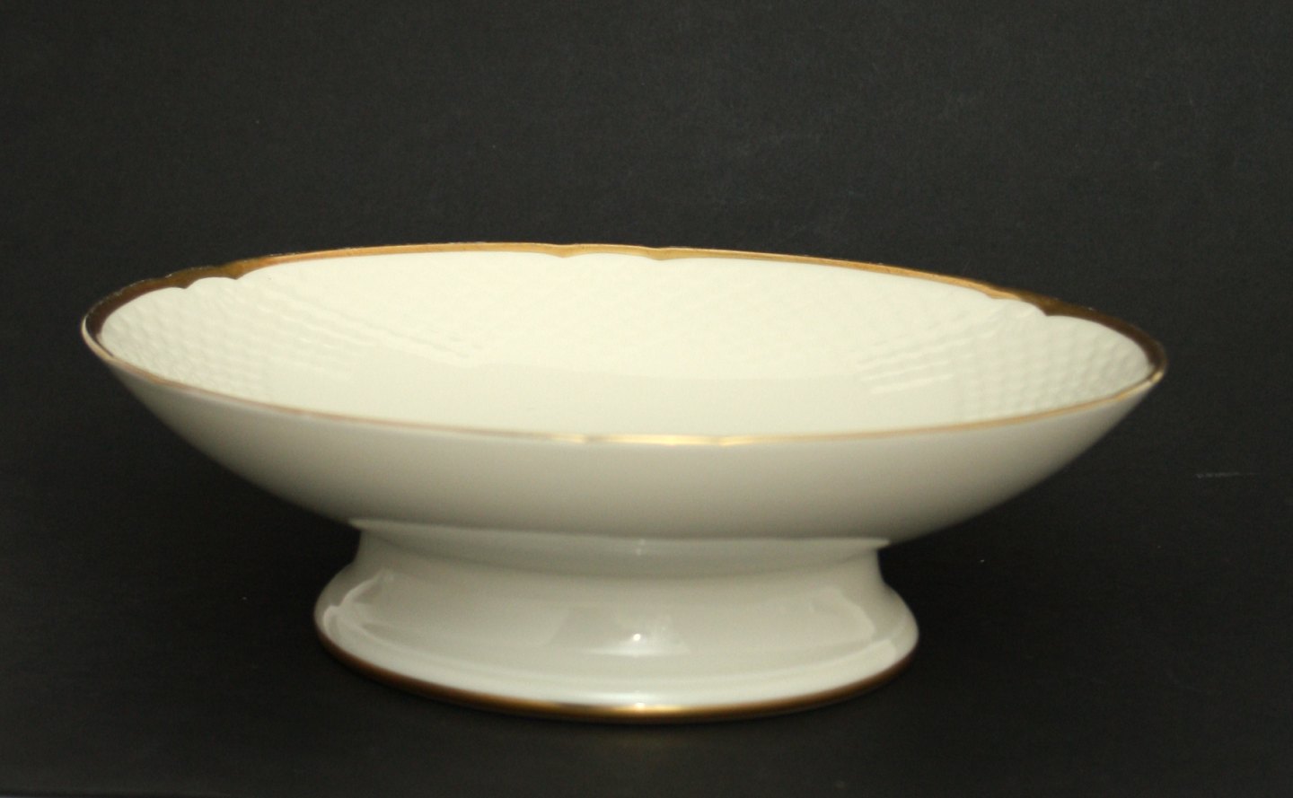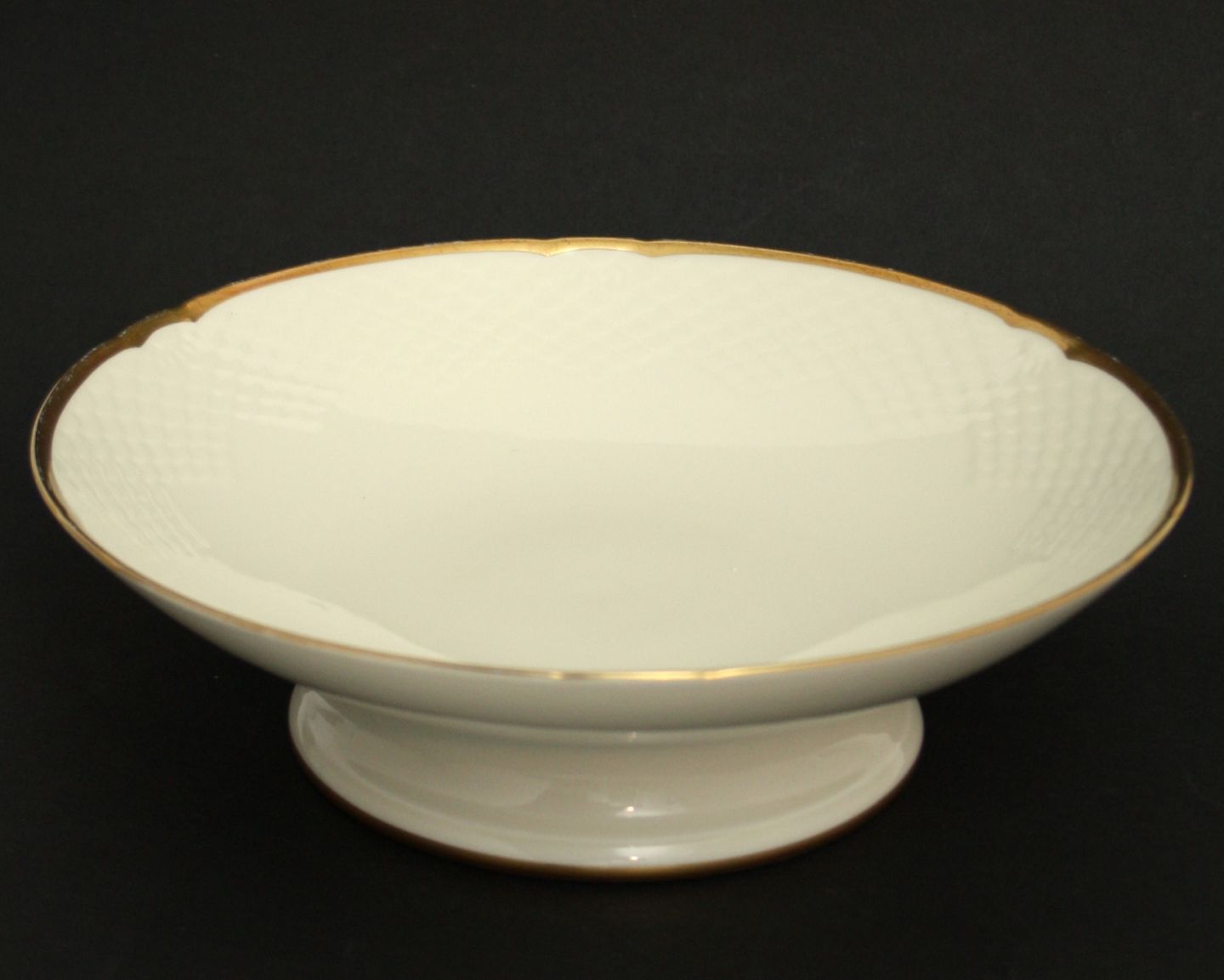 Aakjær, Bing & Grøndahl, creme med guldkant. Lav kagefad, Dek.nr. 206. Diameter 24 cm. højde 7,5 cm. 1. sortering Pris: SOLGT