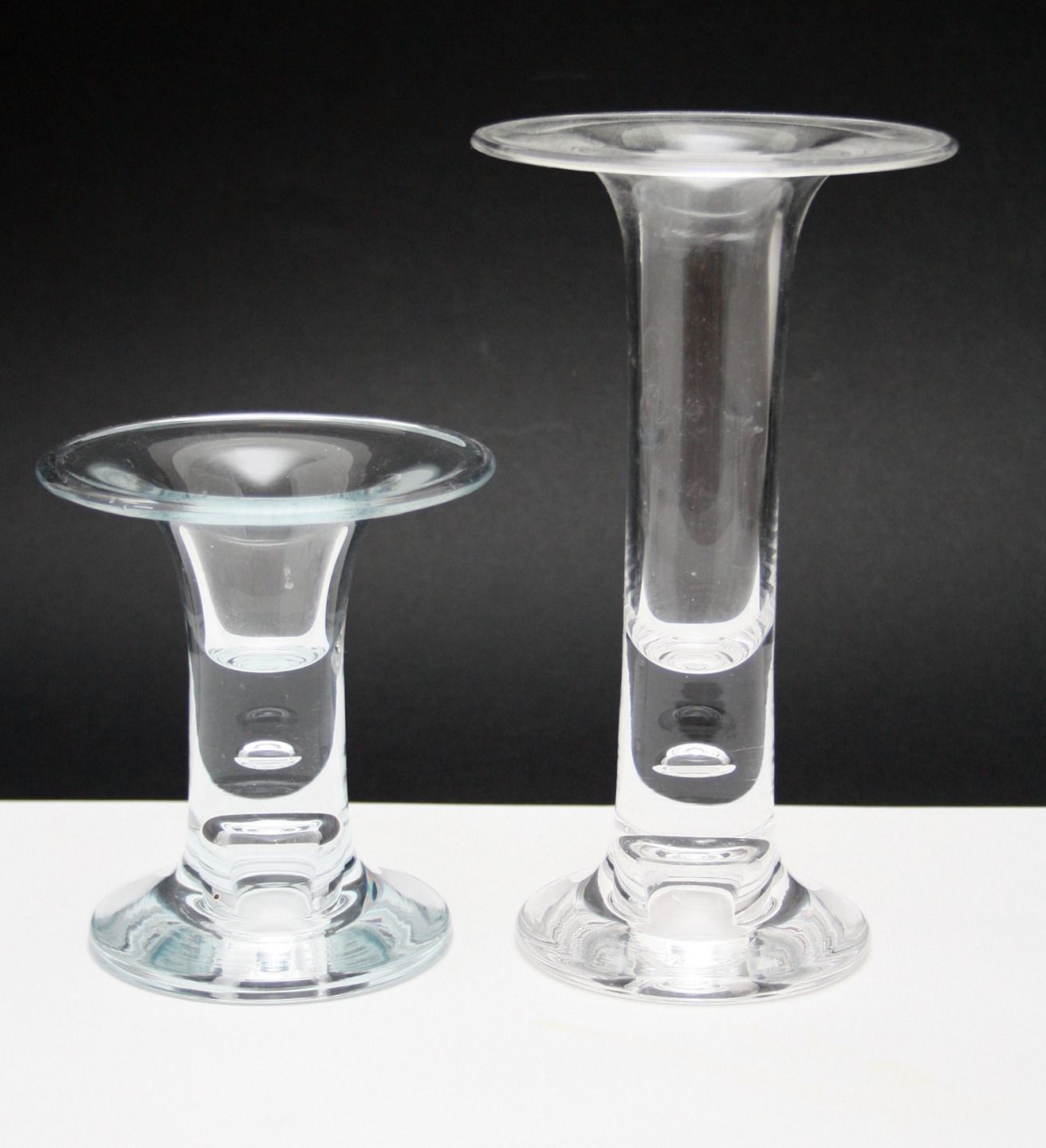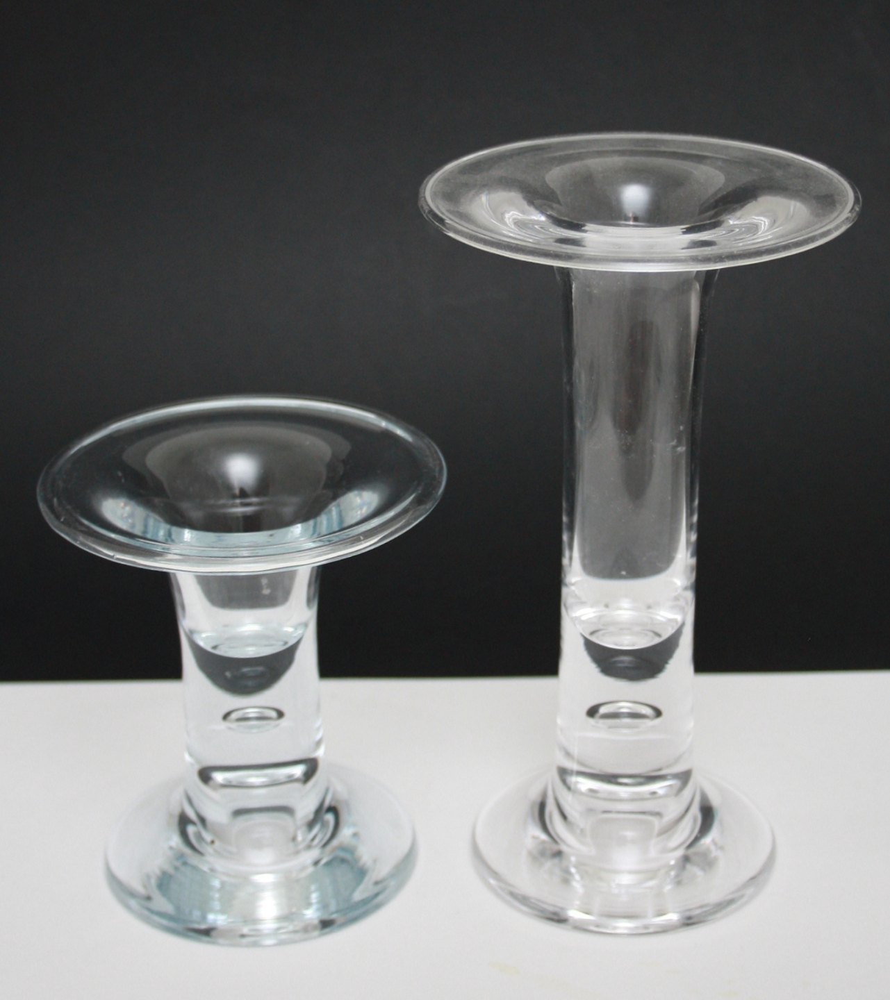 Holmegaard, Merkur vendbare lysestager/vaser med luftboble, designet af Michael Bang 1984.
