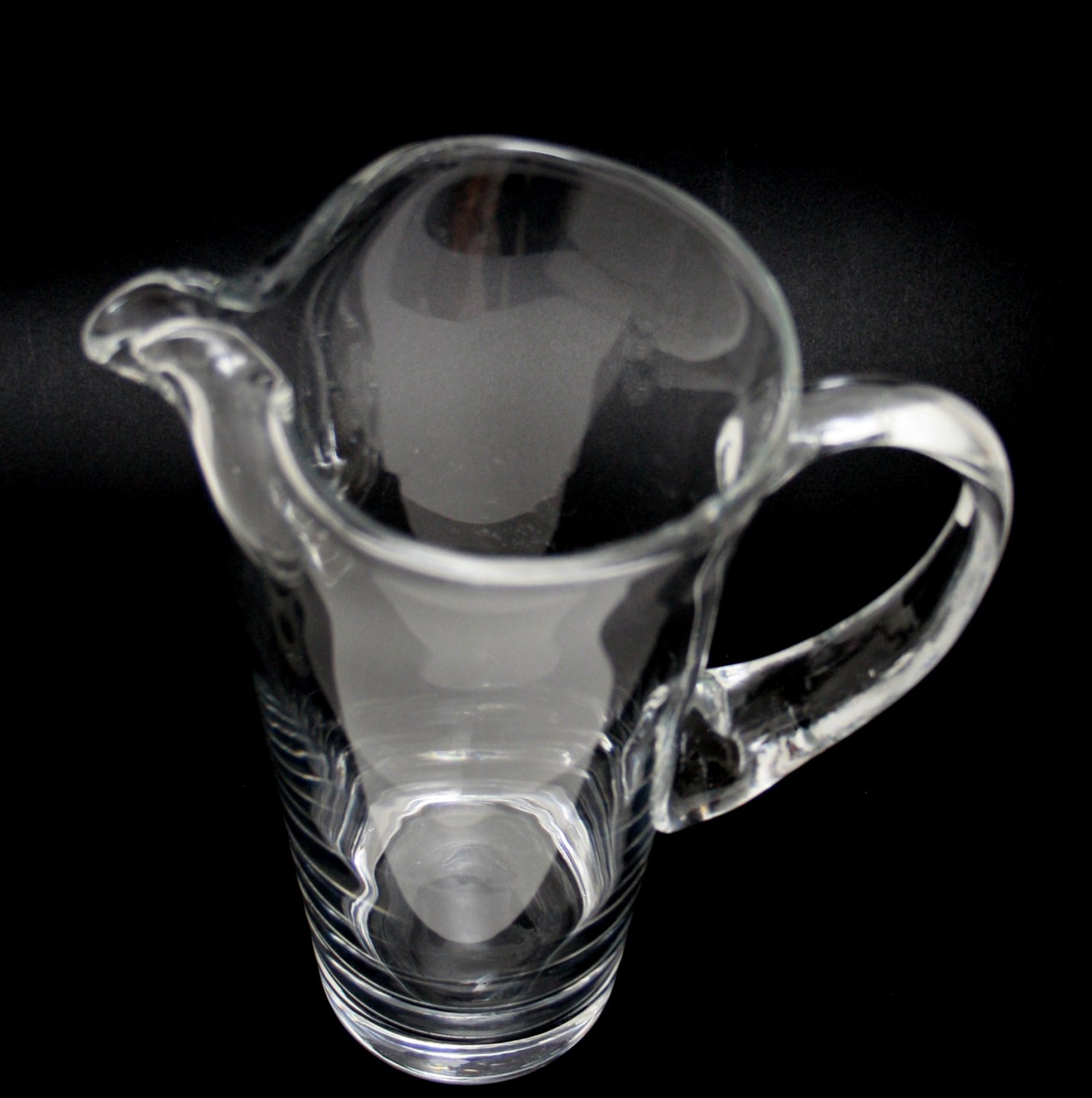 Klar glaskande med isterning tud. Højde 25,5 cm. Øverste diameter ca 12 cm. Pæn stand. Pris: SOLGT