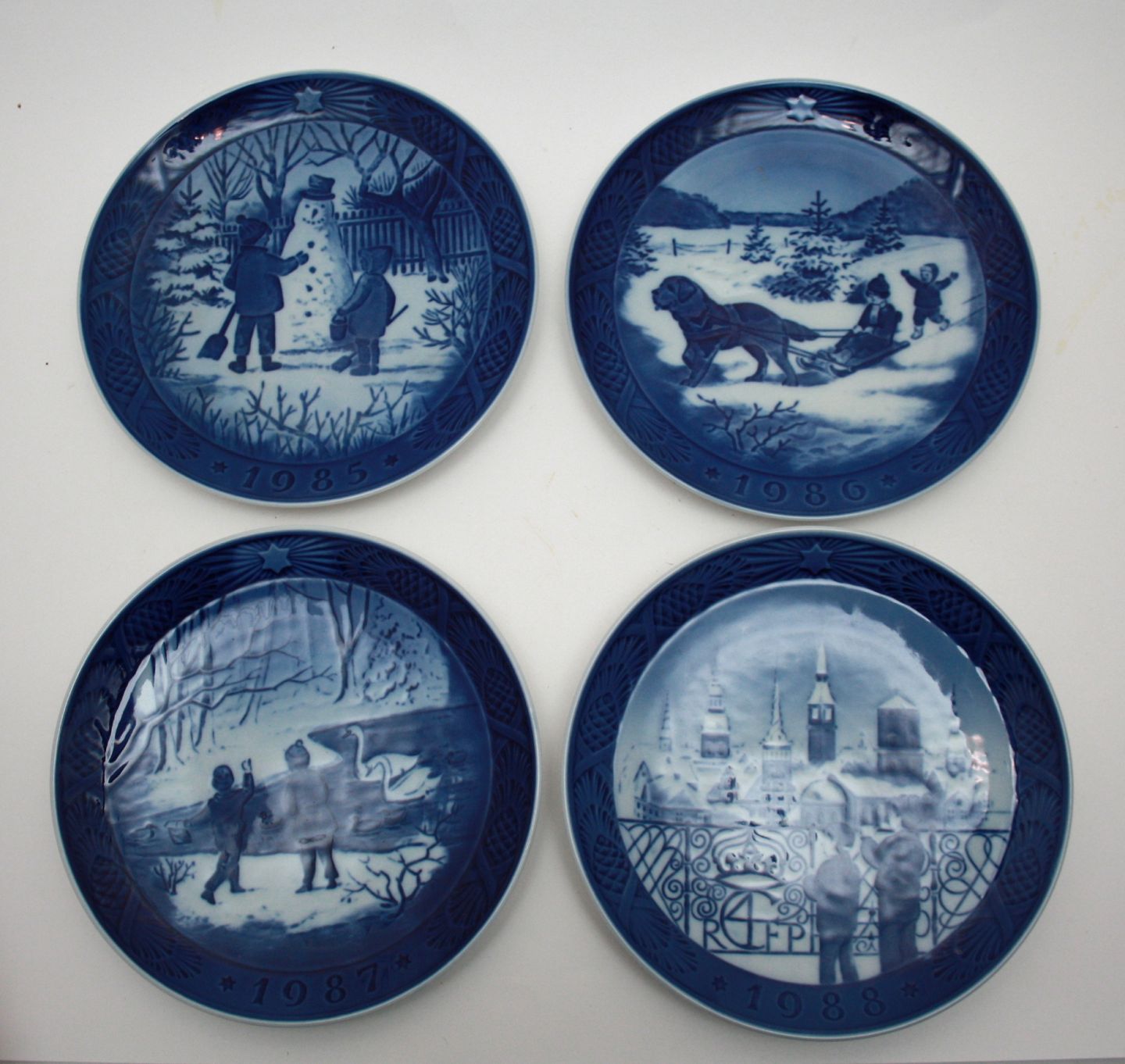 Royal Copenhagen, Juleplatter 1985-1988 af Kaj Lange og Sven Vestergaard. Diameter 18 cm. 1. sortering. Pris: SOLGT