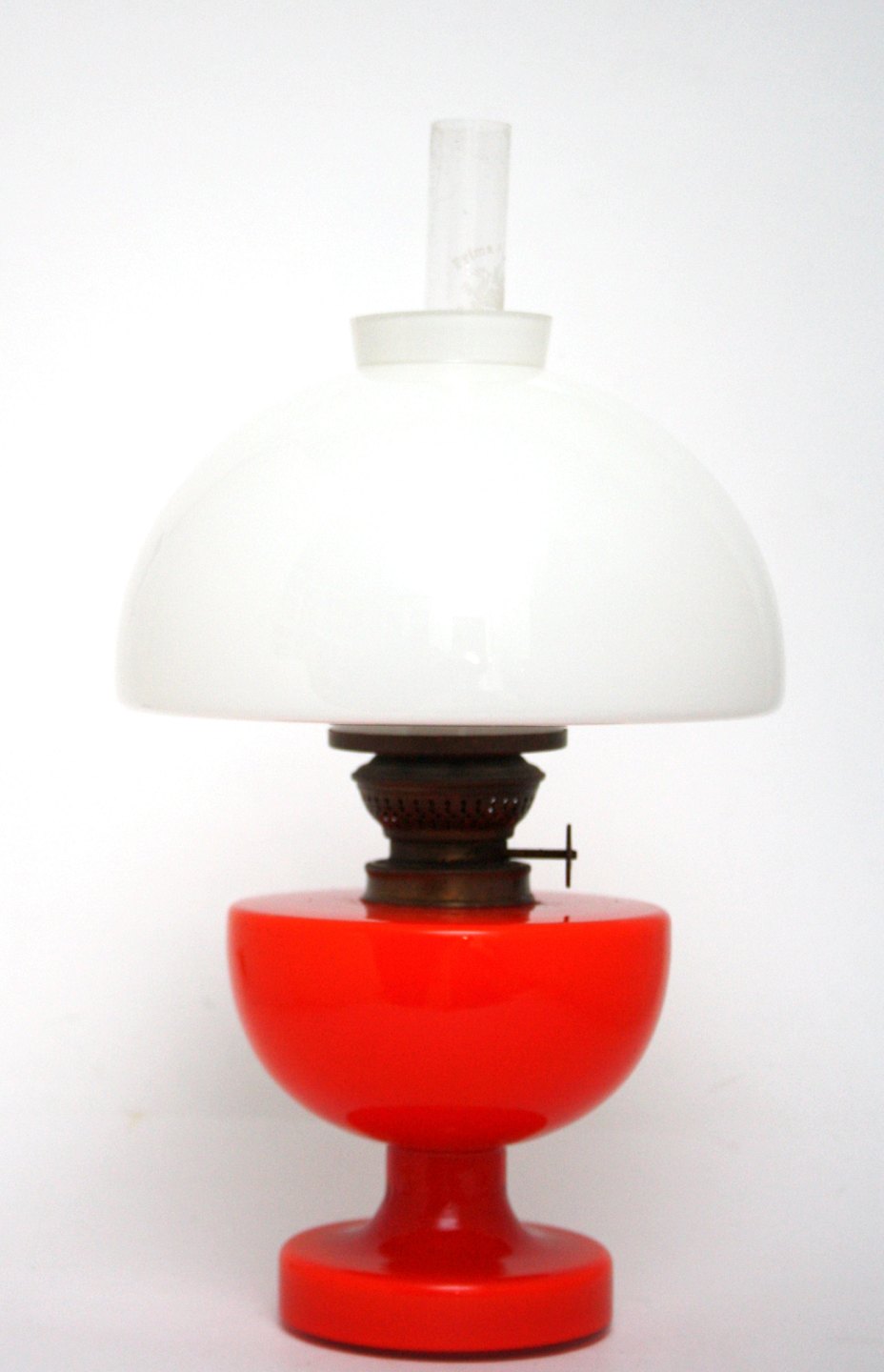 Fyens glasværk/Holmegaard, Victoria petroleumslampe, designet i 1967 af Michael Bang. Højde 30 cm. Største diameter på fod 13 cm. Pris: SOLGT