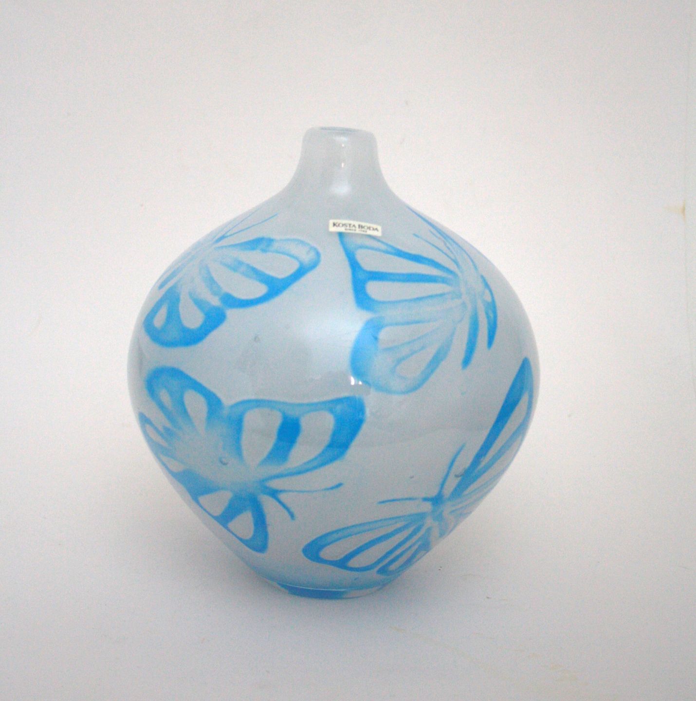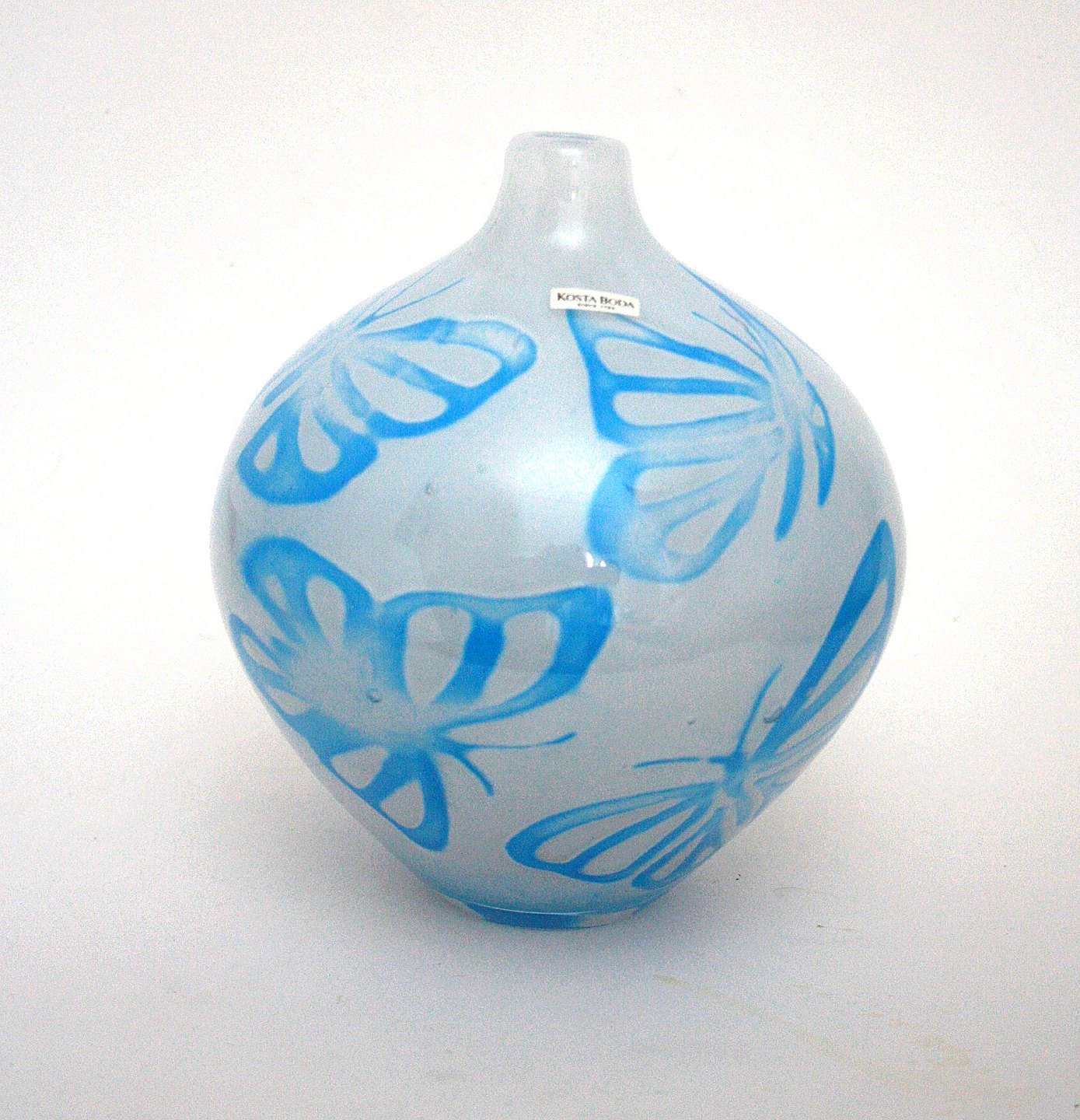 Kosta Boda, Sweden, Vase med sommerfugle motiv. Designet af Olle Brozen. Højde 20 cm. Største diameter 16 cm. Vægt ca 4 kg. Fin stand. Pris: 850 kr.