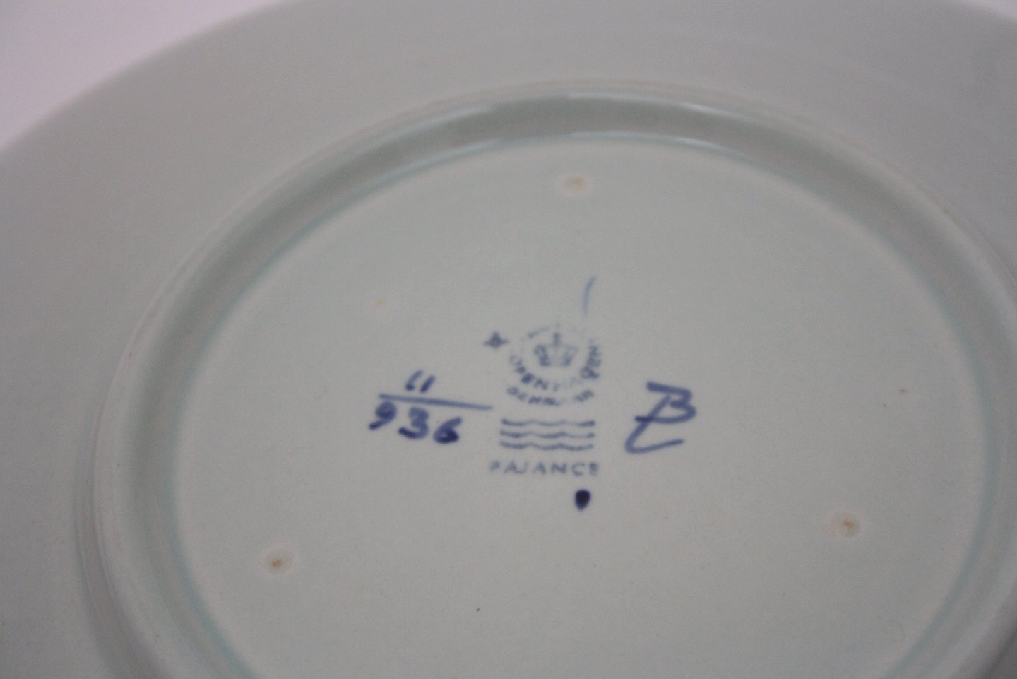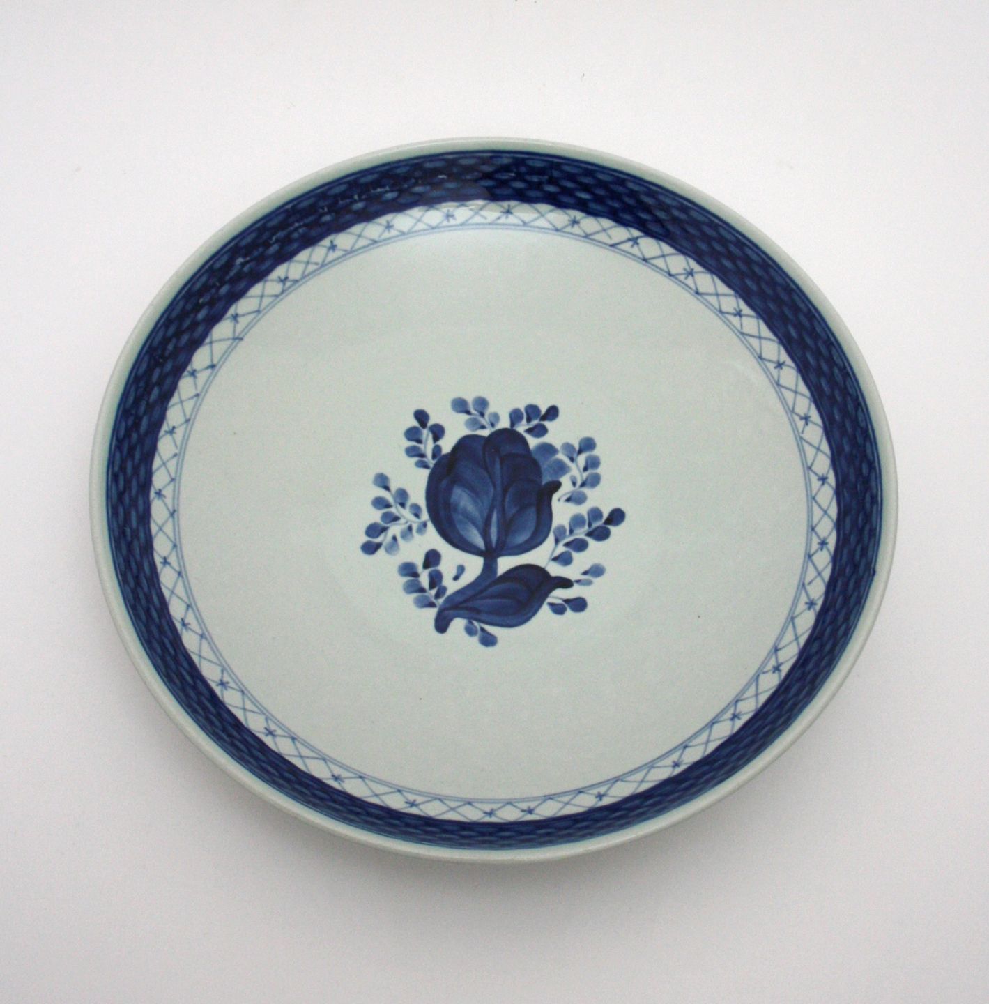 Royal Copenhagen, Tranquebar lyseblå fajance med mørkeblå tulipan og flettet bort udført af Christian Joachim fra 1914 til 1968, hvor det overgik til Royal Copenhagen.