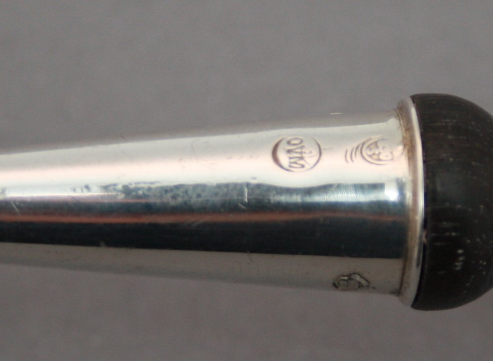 Punchske med træskaft. Mrk. OVM, Orla Vagn Mogensen, Kbh. 1949-1975. Længde 38 cm. Pris: SOLGT