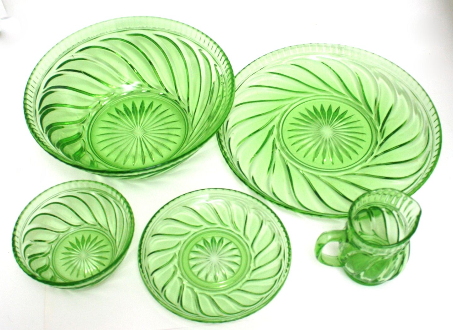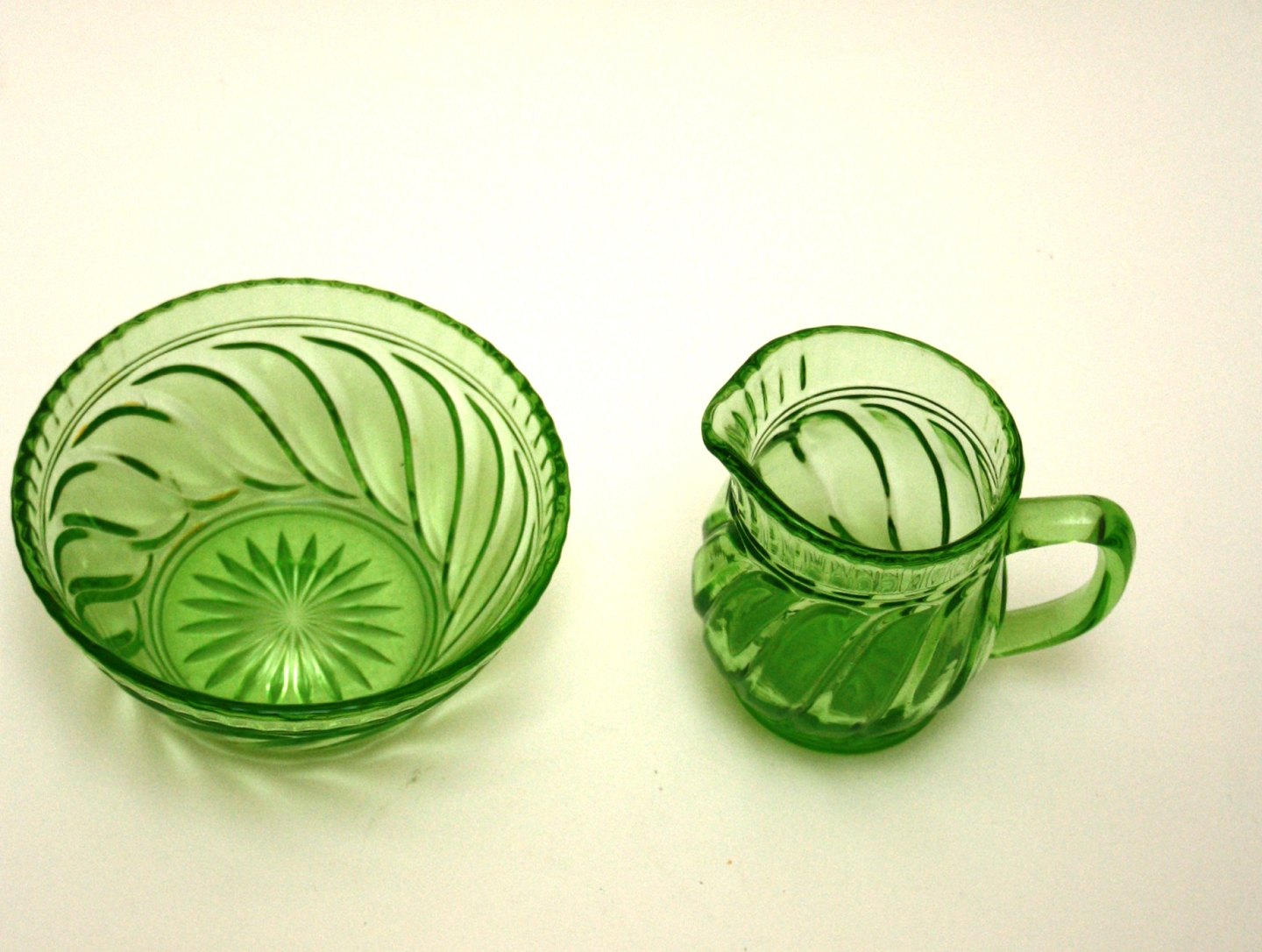 Skåle, fade sukker og fløde Skjold grøn, Fyens Glasværk